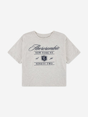 Abercrombie & Fitch Girls Crest Boxy T-Shirt in Beige