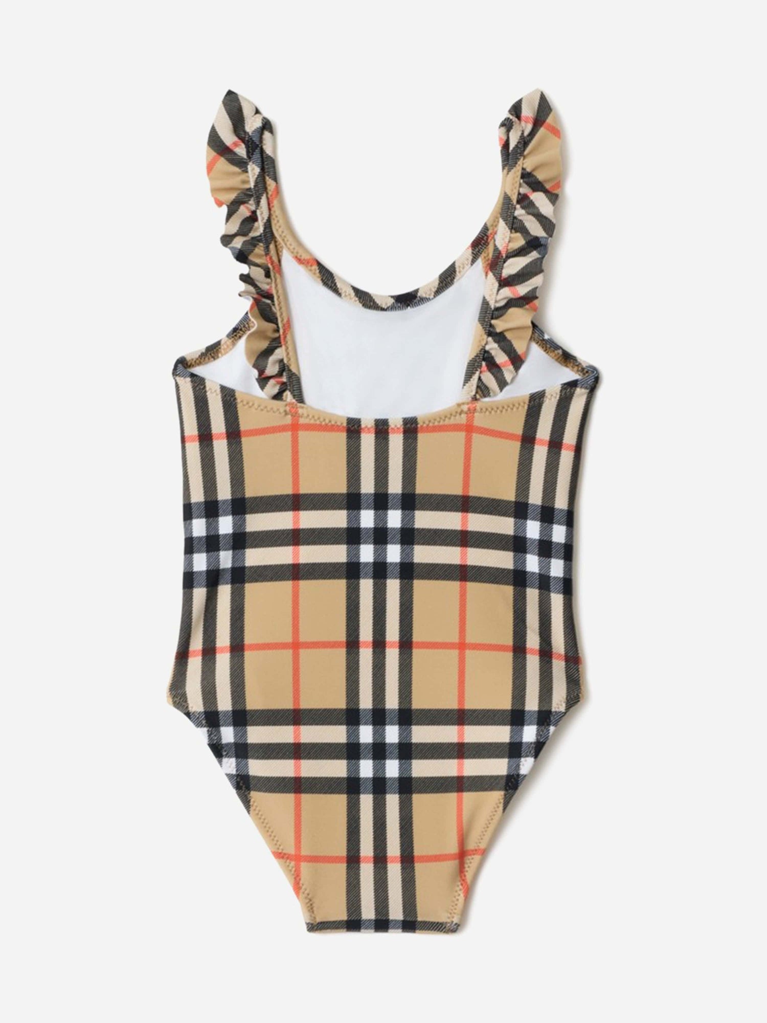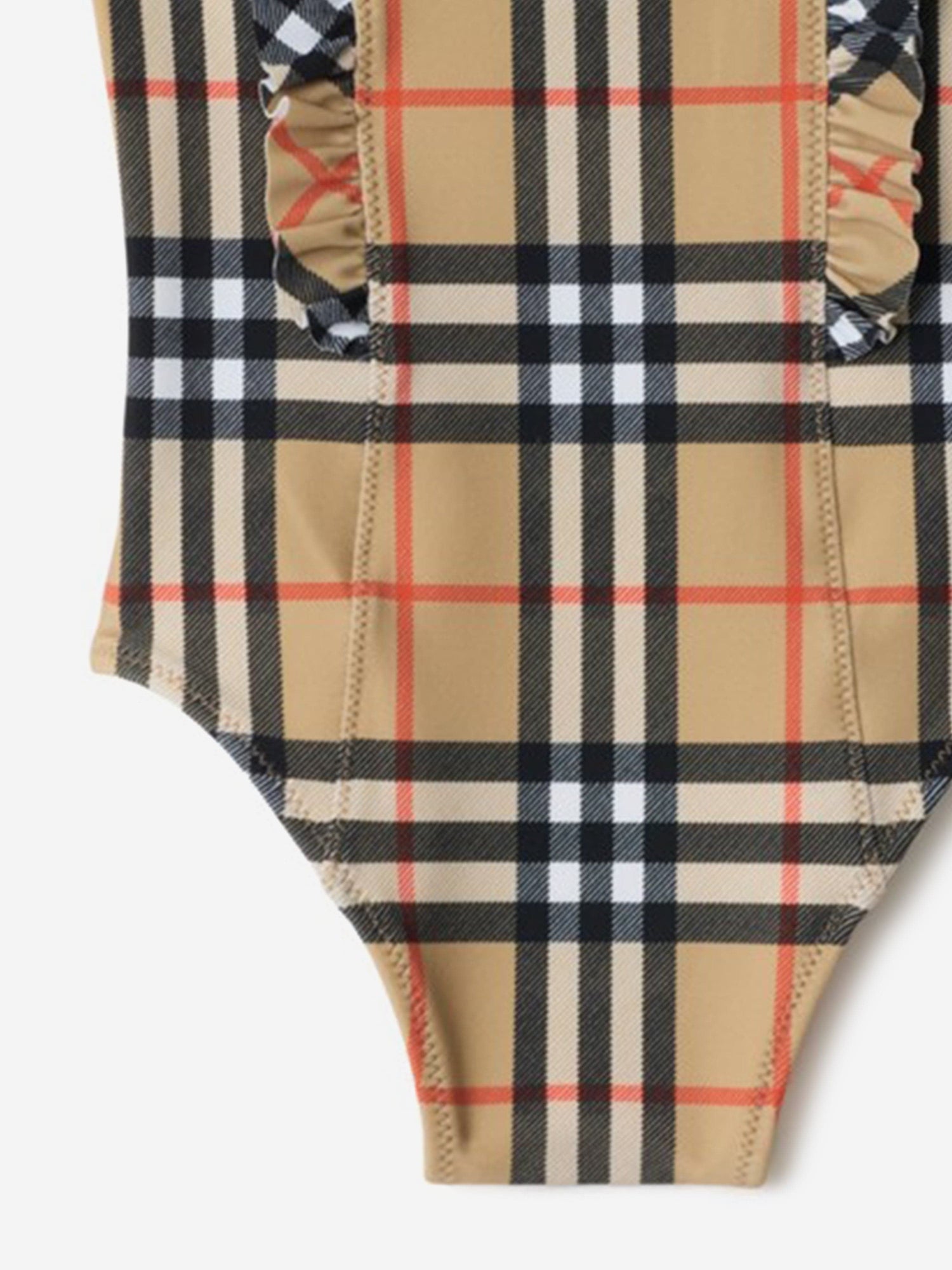 Burberry Girls Tilly Ruffle Trim Check Swimsuit in Beige