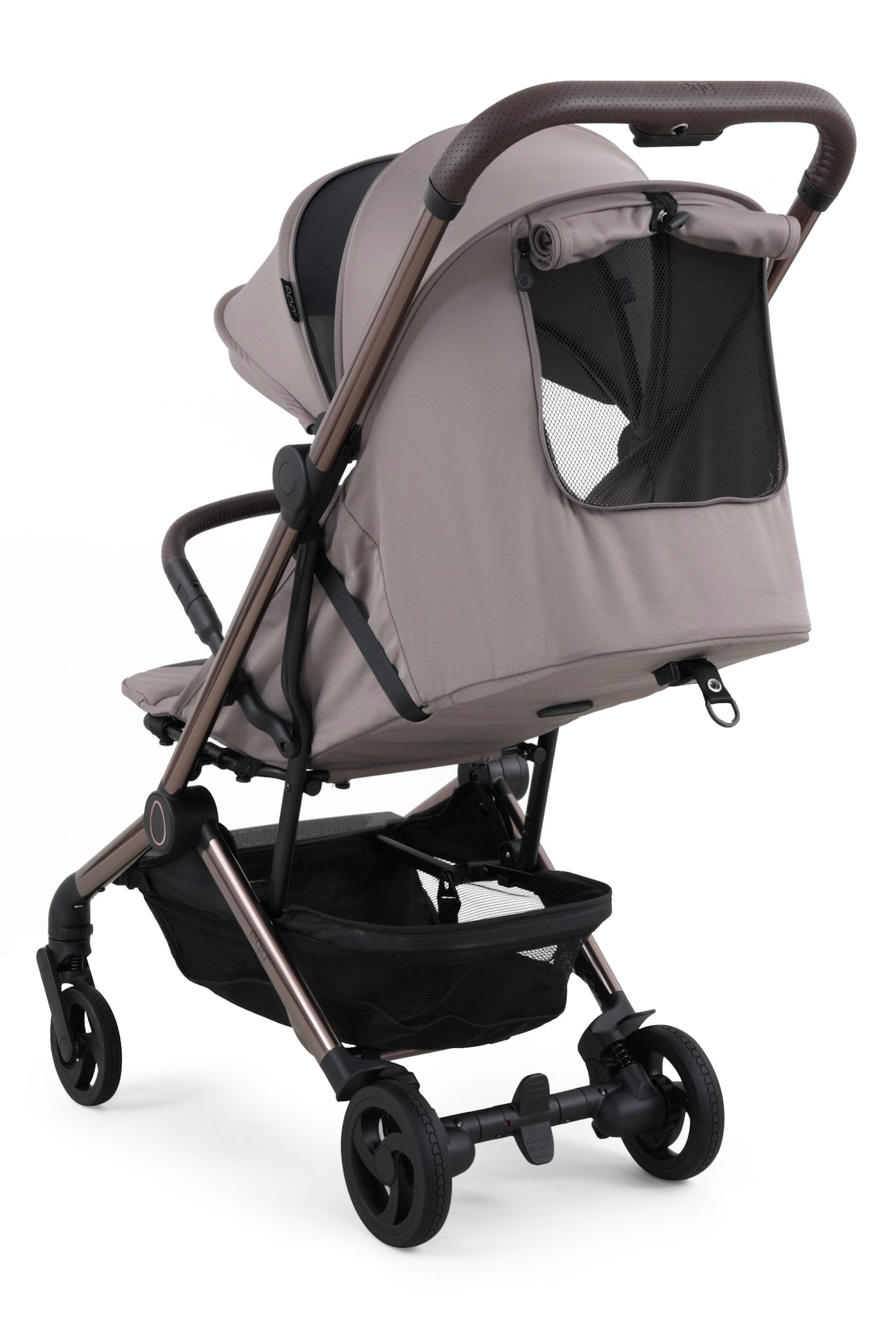 A rear storage pocket and large 3kg-capacity basket give practical storage options, while signature egg® styling—from the hand-stitched leatherette handlebar to the gated bumper bar—delivers unmistakable sophistication.