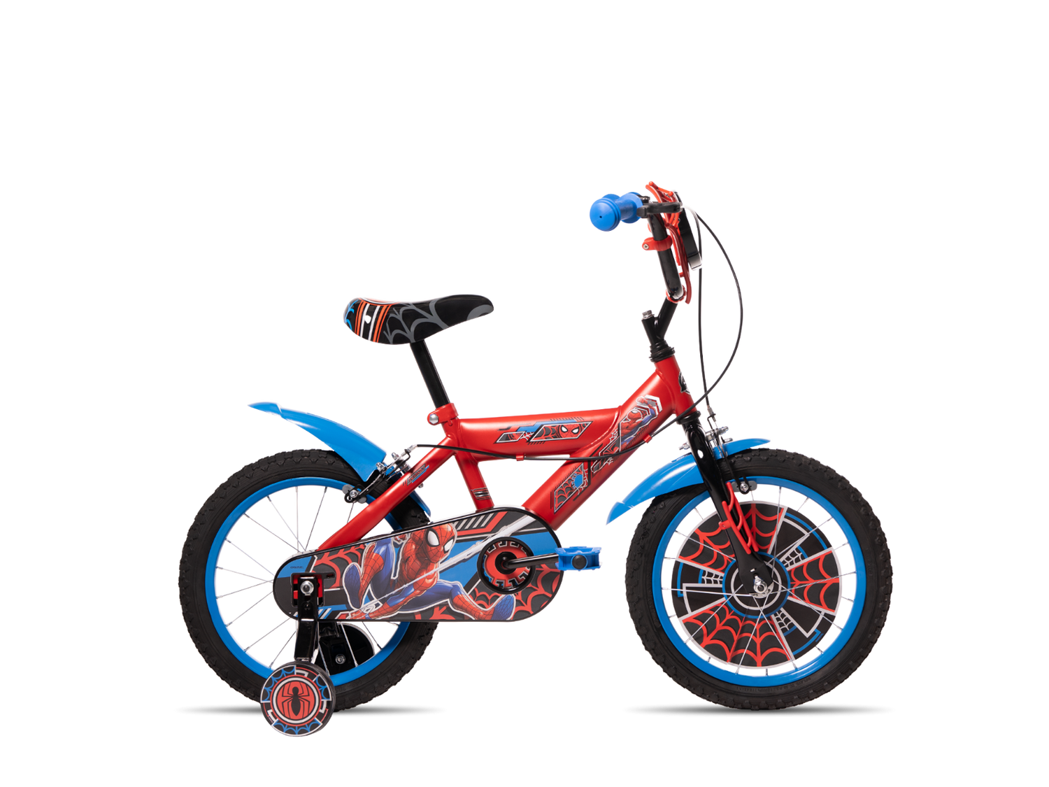 - Official 16” Spider-Man kids bike with 3D web detailing and character handlebar plaque