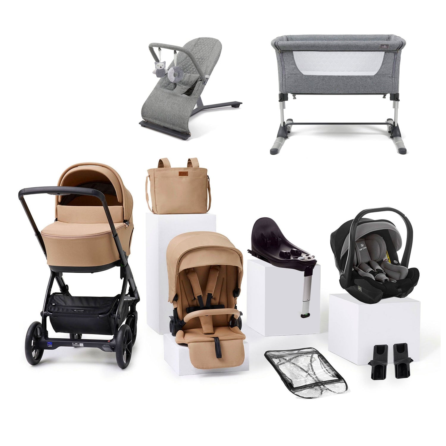 • All-in-One Bundle – Complete newborn solution: pushchair, carrycot, car seat, bedside crib & bouncer