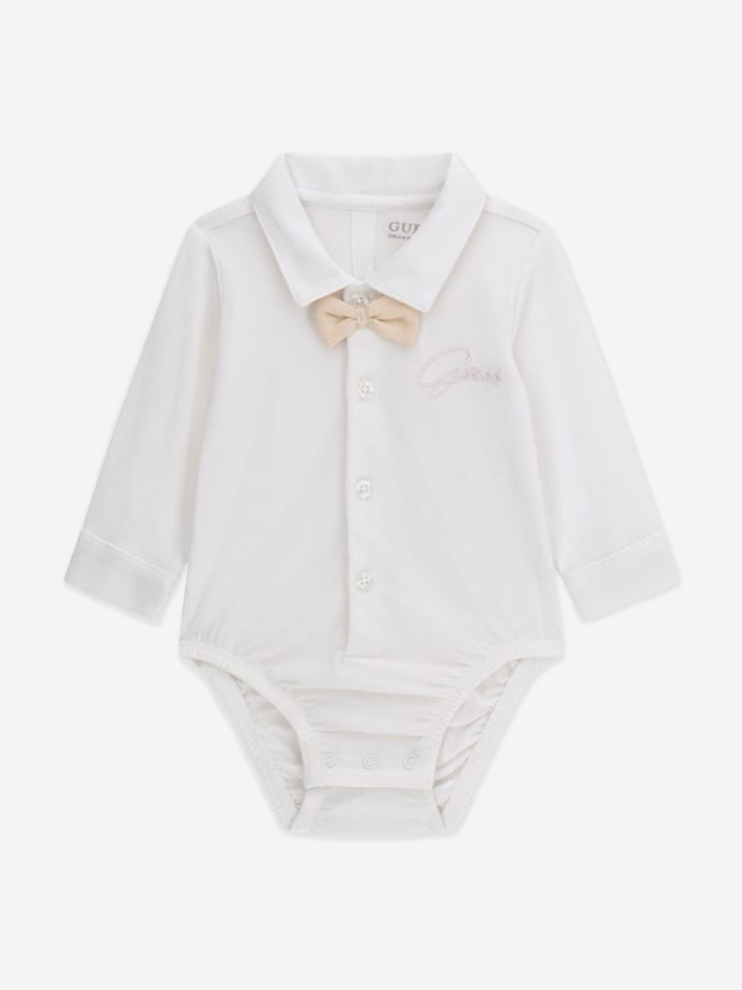 Guess portray uncomplicated elegance in their Californian aesthetics. This baby boys pure white bodysuit set embodies the label's dynamic personality.