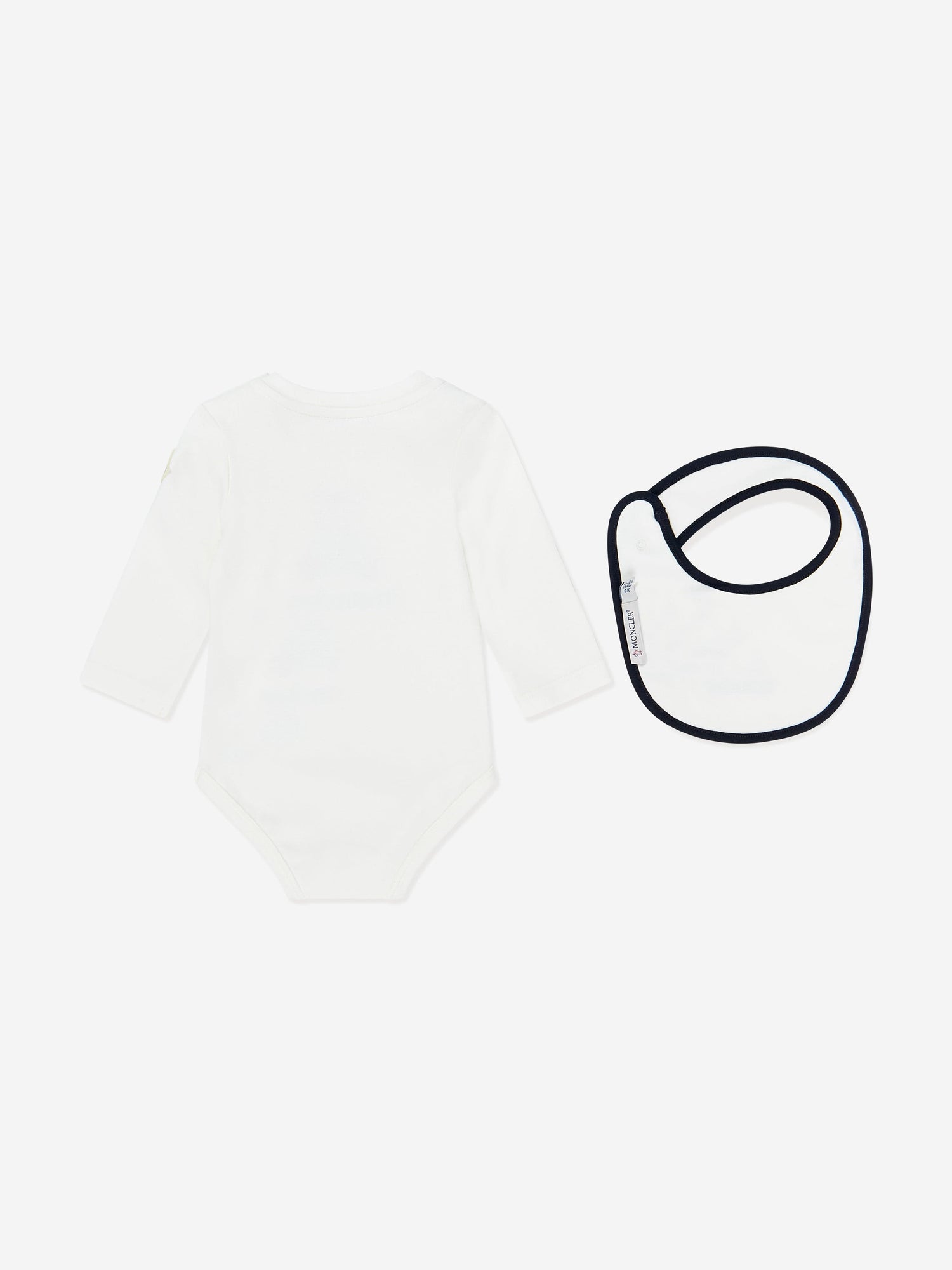 Moncler Enfant Baby Teddy Bear Bodysuit and Bib Gift Set in White