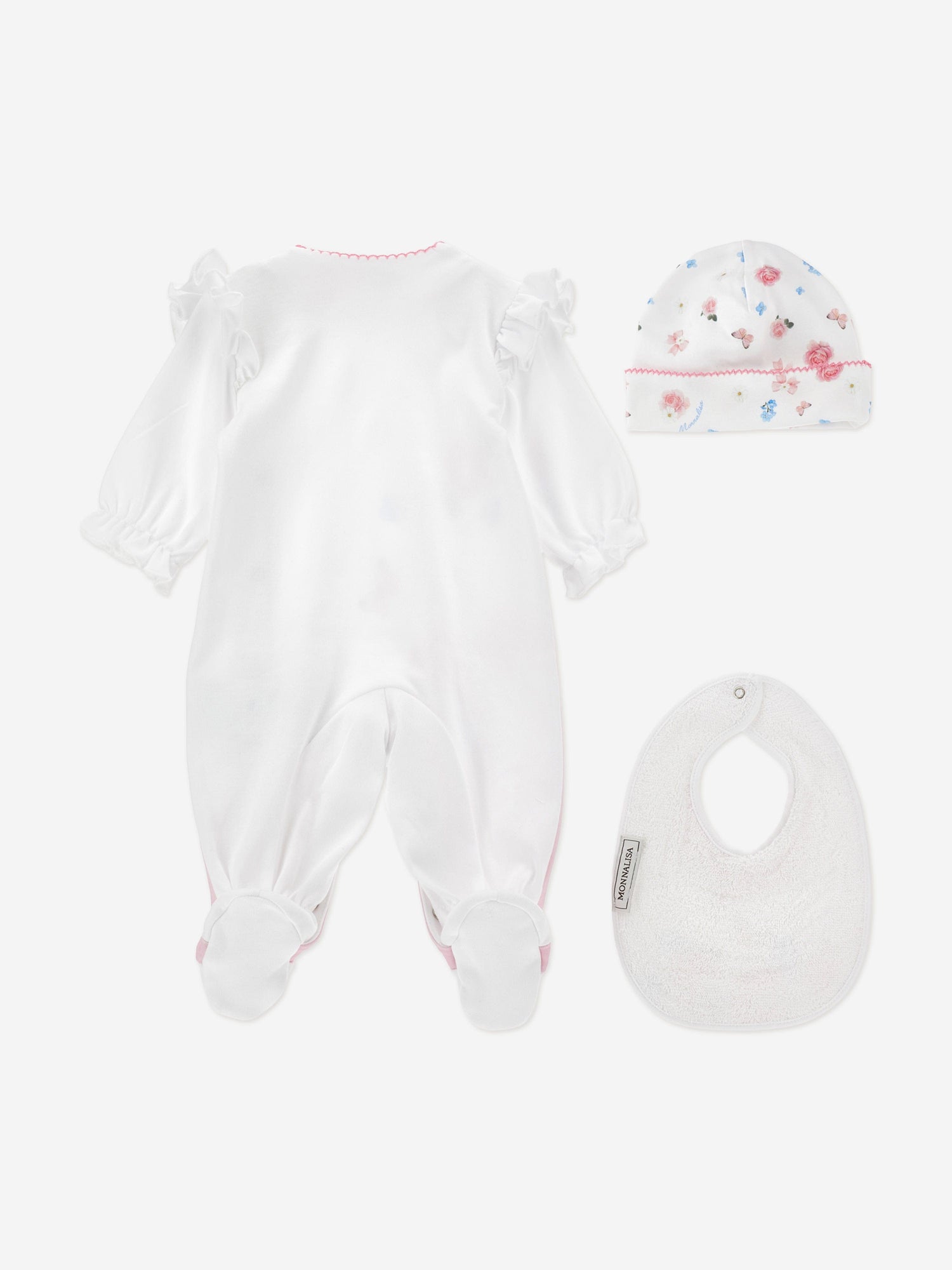 Monnalisa weave beautiful high quality materials with traditional archives. This baby girls babygrow set embodies the Italian label's preference for everyday pieces.