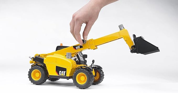 Compact yet powerful, the Bruder CAT® Telehandler is the perfect replica of the real-world machine. Its extendable arm with adjustable height, changeable bucket scoop, and fully functional steering ensure realistic operation. The model is controlled by four easy-to-use silver turning handles that bring the mechanical details to life. Crafted from high-quality ABS plastic, this Telehandler is durable enough for hours of active play while maintaining incredible detail for collectors.