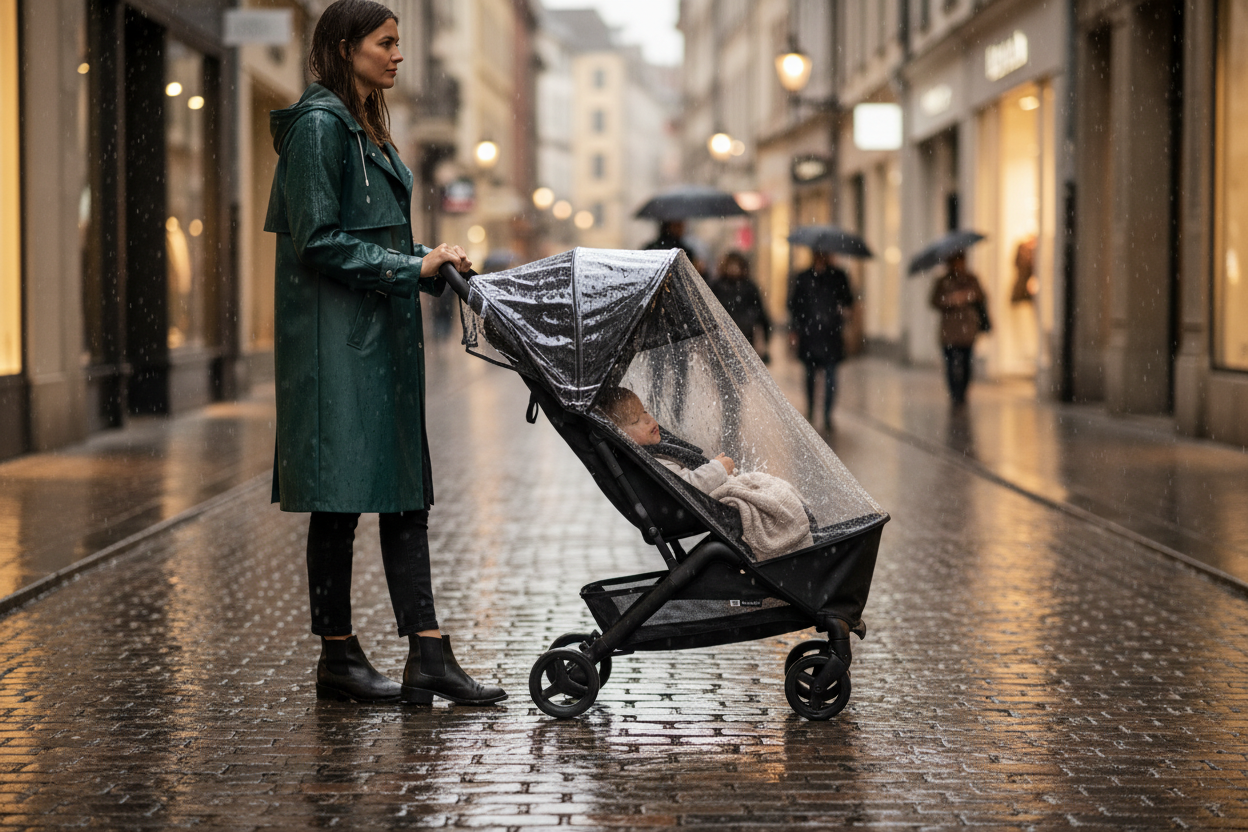The rain cover is easy to fit and remove, making it ideal for everyday city use and travel. When the sun comes back out, it folds away neatly into a compact size, so it’s always within reach without taking up valuable space.