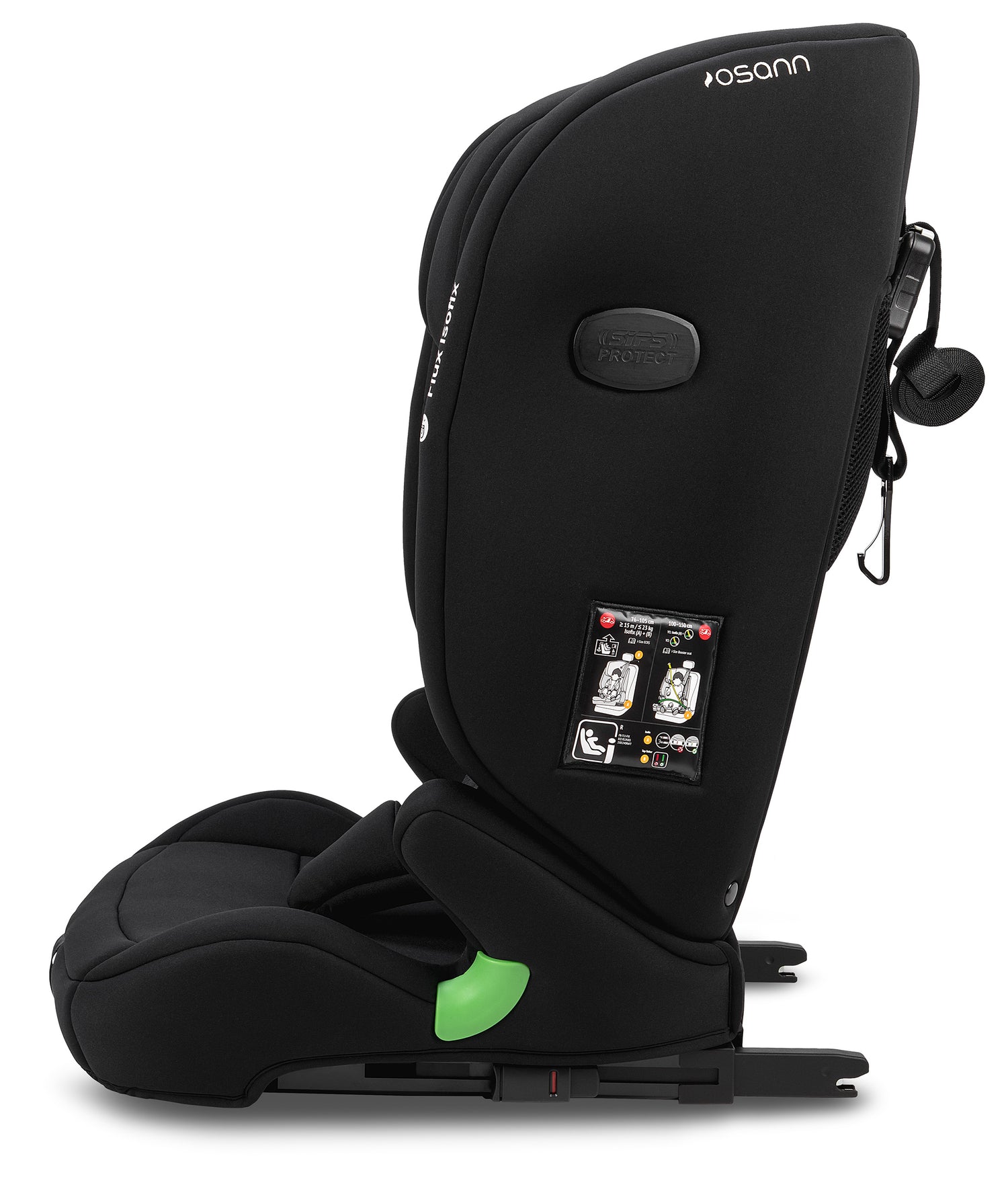 Engineered to meet the latest R129 i-Size safety standards, the Osann Flux Isofix car seat adapts as your child grows. From toddler to pre-teen, it ensures maximum comfort with its 14-position height-adjustable headrest, removable comfort insert, and ergonomically shaped seat. The automatic 5-point harness protects children up to 105 cm and 23 kg, before transitioning seamlessly to high-back booster mode up to 150 cm. Special side impact protectors (SIPS PROTECT) provide enhanced safety, while magnetic strap holders and individually adjustable Isofix connectors deliver ease of use for parents. With its blend of safety, practicality, and comfort, the Flux i-Size offers lasting value for families on the move.