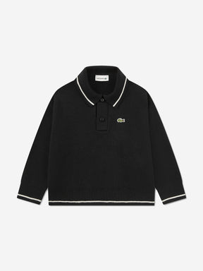 Add timeless style to his wardrobe with this boys black polo sweater by Lacoste.