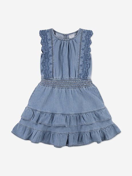 Abercrombie & Fitch Girls Smocked Waist Tiered Dress in Blue