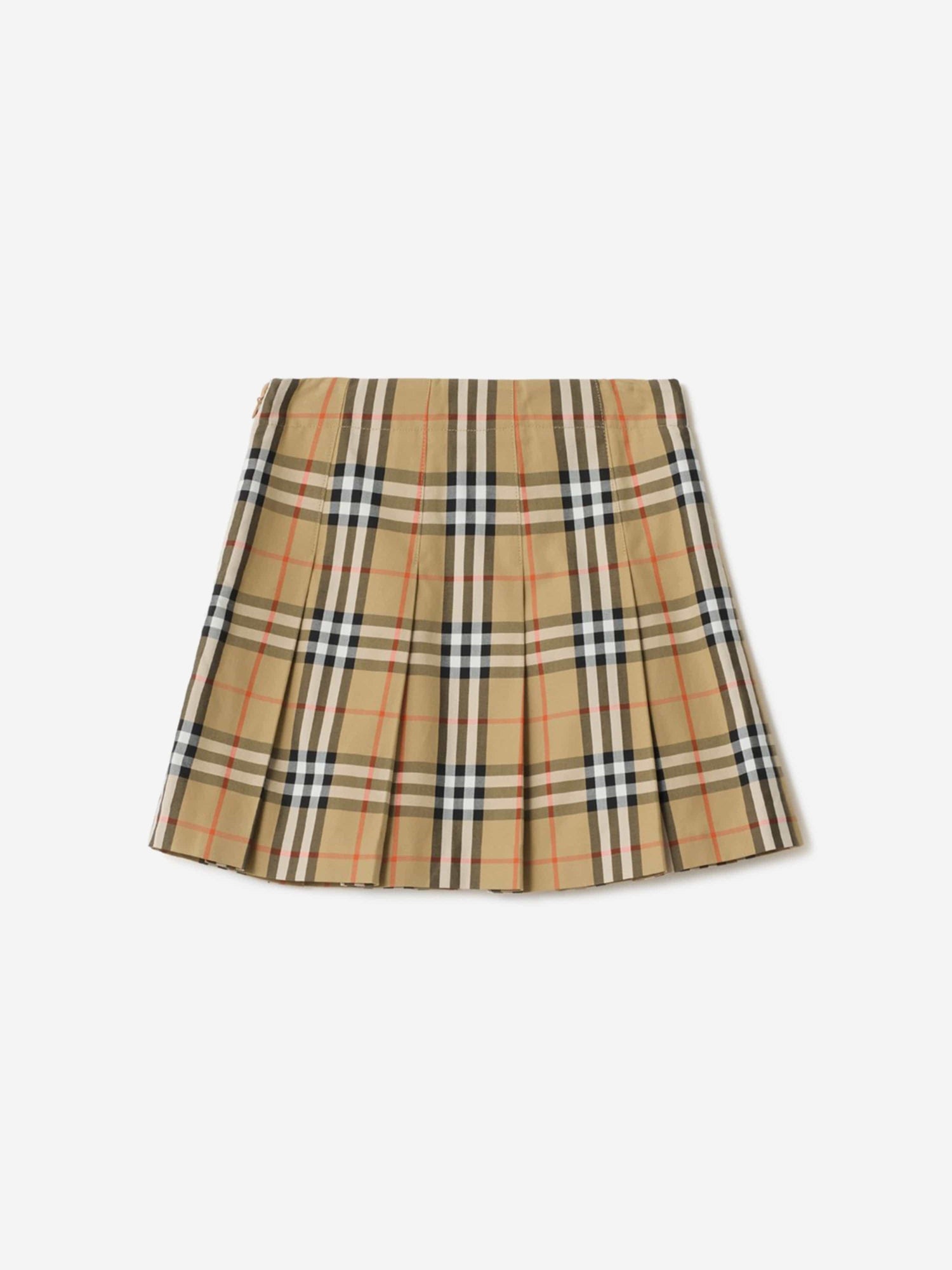 Burberry Girls Gabrielle Pleated Check Skirt in Beige