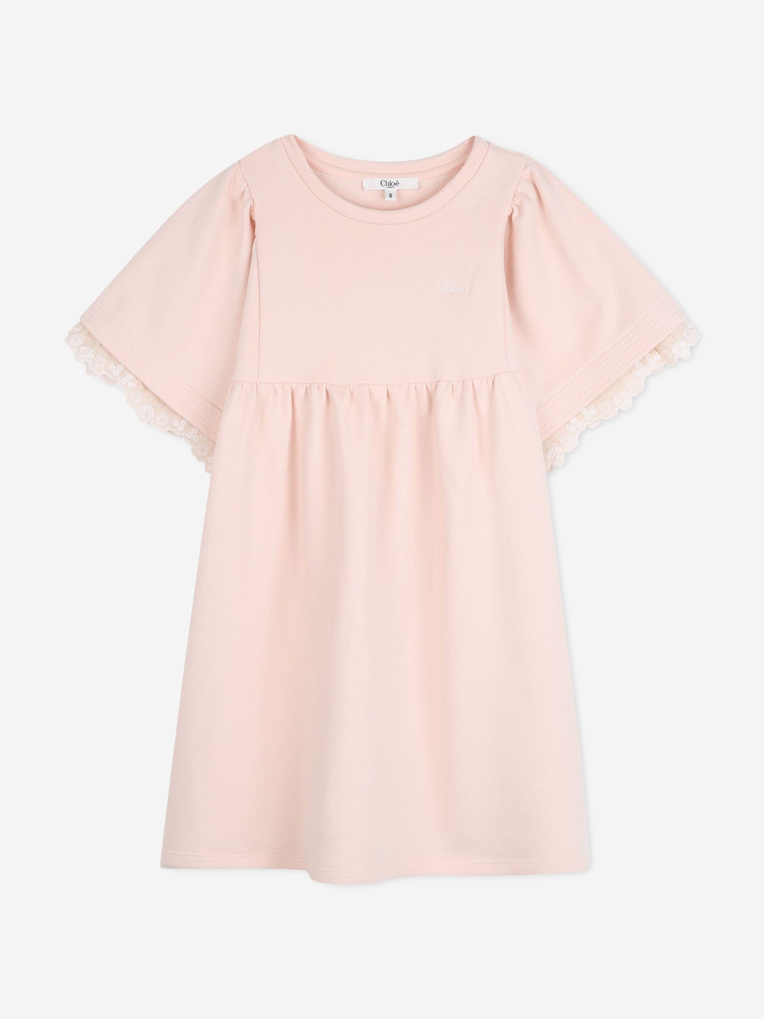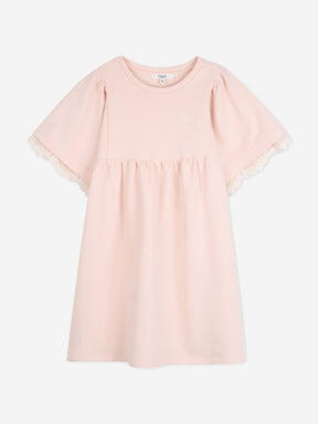 Chloé Girls Embroidered Flutter Sleeve Dress in Pink