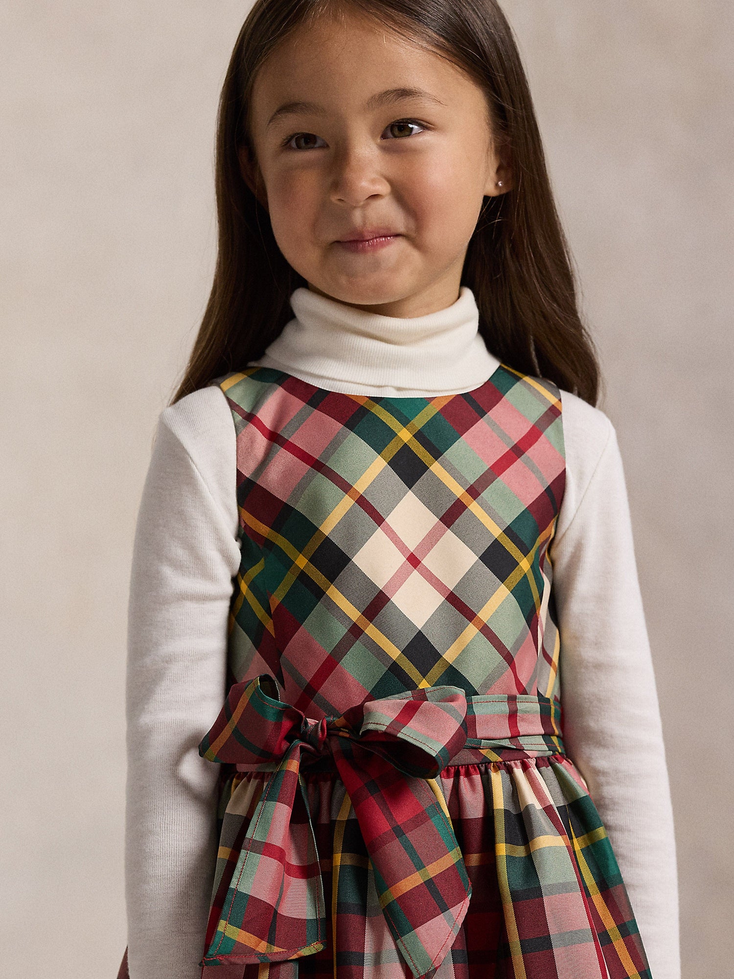 Ralph Lauren Girls Taffeta Tartan Sleeveless Dress in Red
