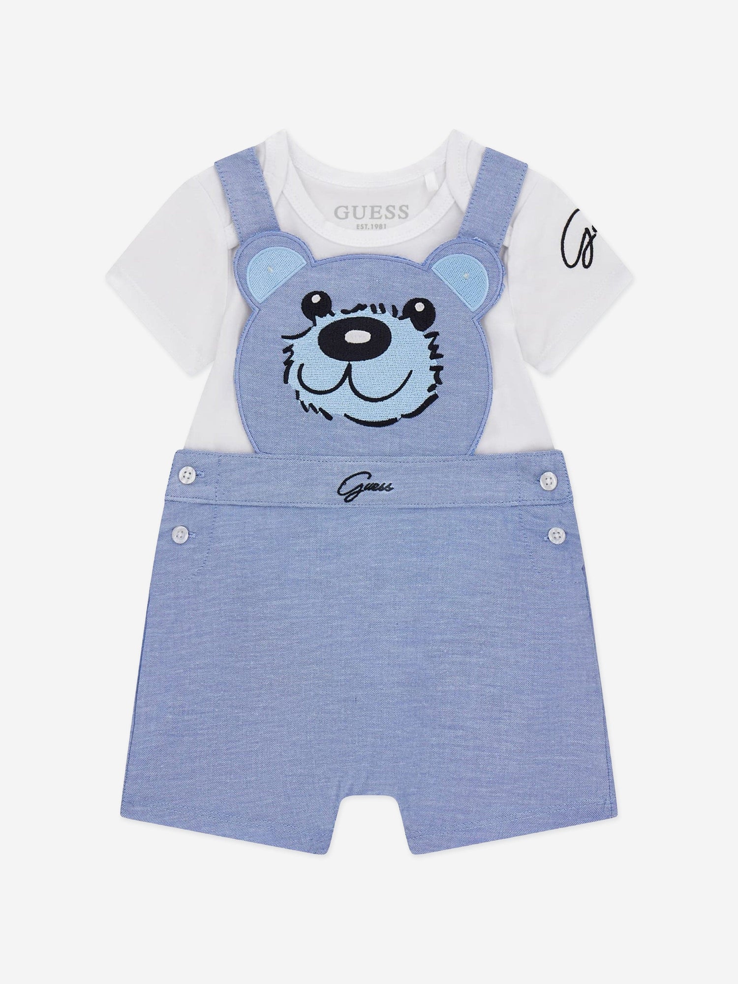 •Dungarees: Teddy Bear Embroidered Head, Buttons, Back Elastic Waist, Guess Embroidery