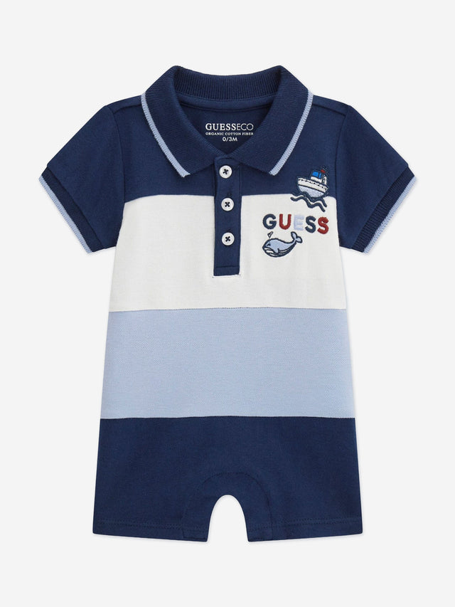 Guess Baby Boys Striped Polo Romper in Navy
