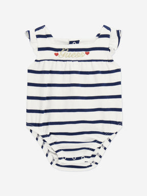 Guess Baby Girls Striped Logo Romper in Navy