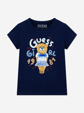 Guess Girls Bear Print T-Shirt in Navy