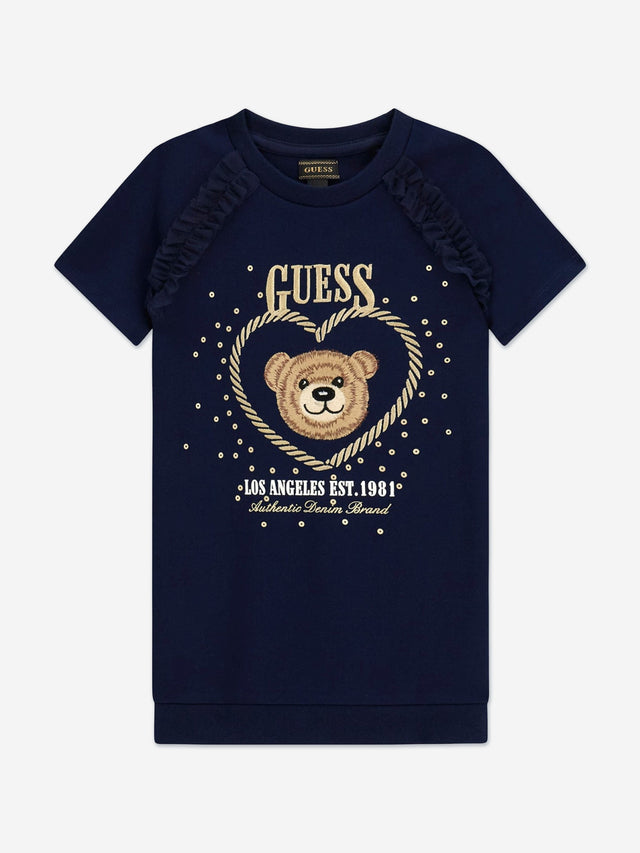 Guess Girls Punto Milano Bear Dress in Navy