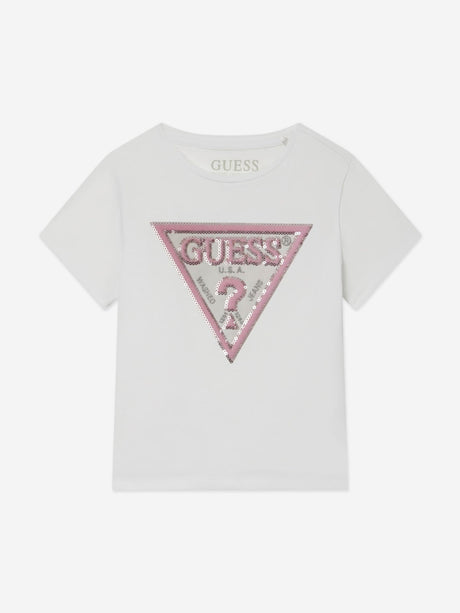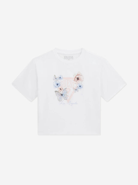 Guess Girls Flower and Butterfly Logo T-Shirt in White