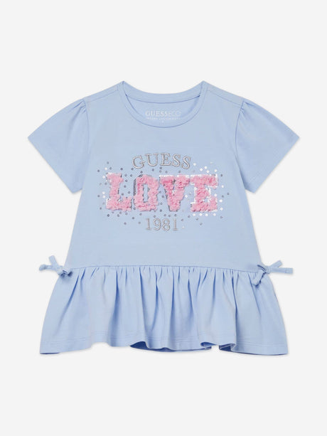 Guess Girls Love Logo Peplum T-Shirt in Blue