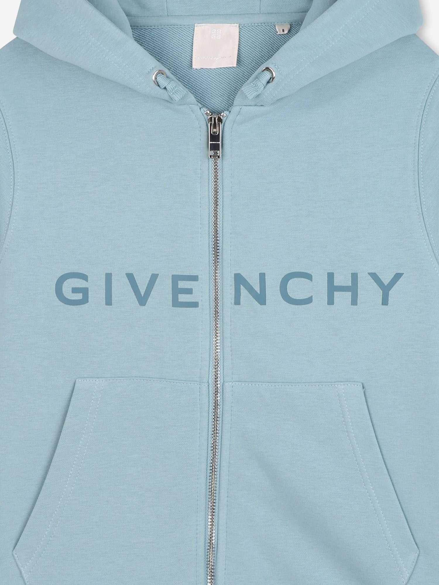 Givenchy Kids Logo Print Zip Up Top in Blue