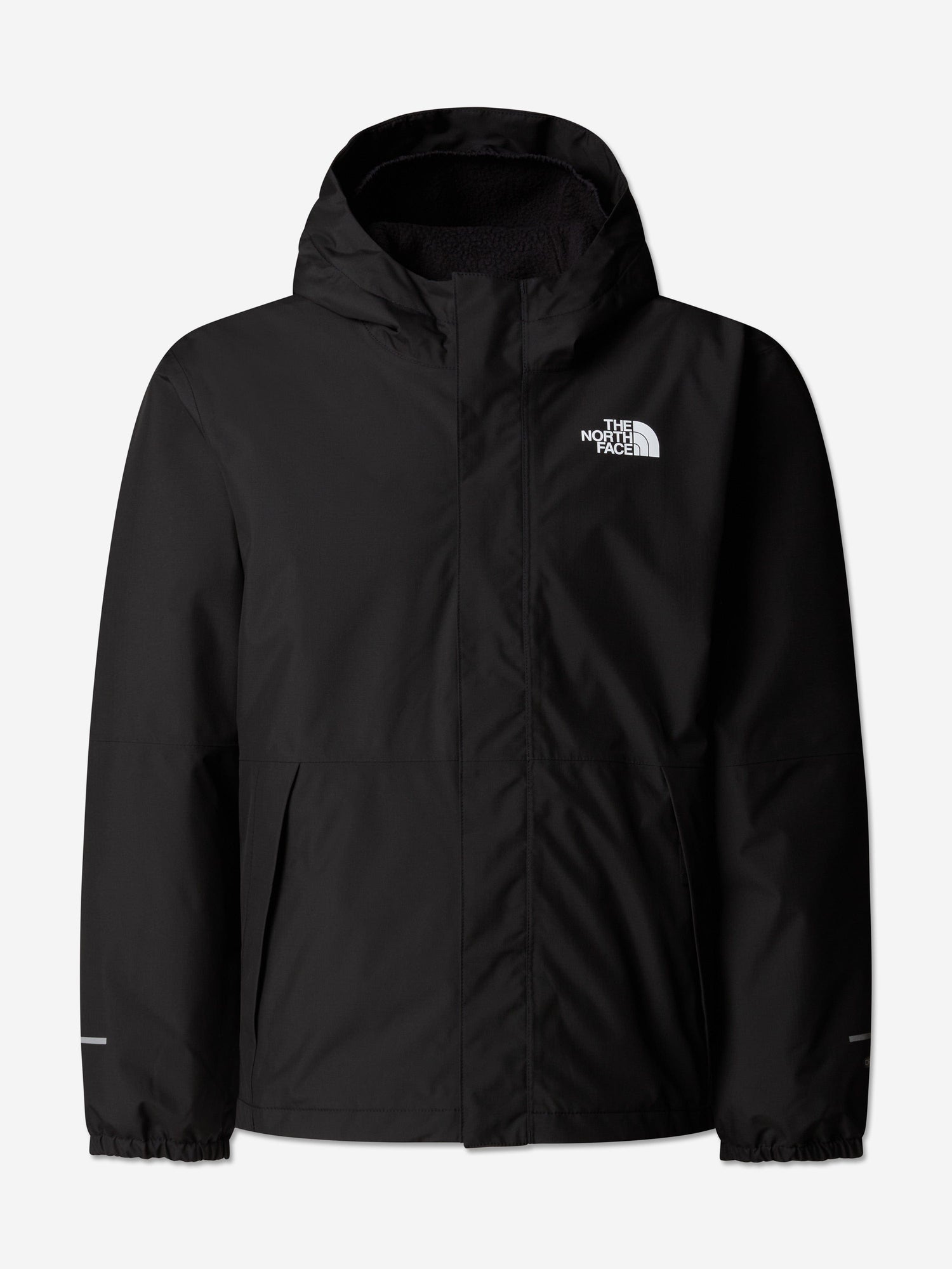 Introducing the Boys Warm Antora Rain Jacket in Black by The North Face – an indispensable addition to your boy's wardrobe for year-round protection. Here's why it excels: