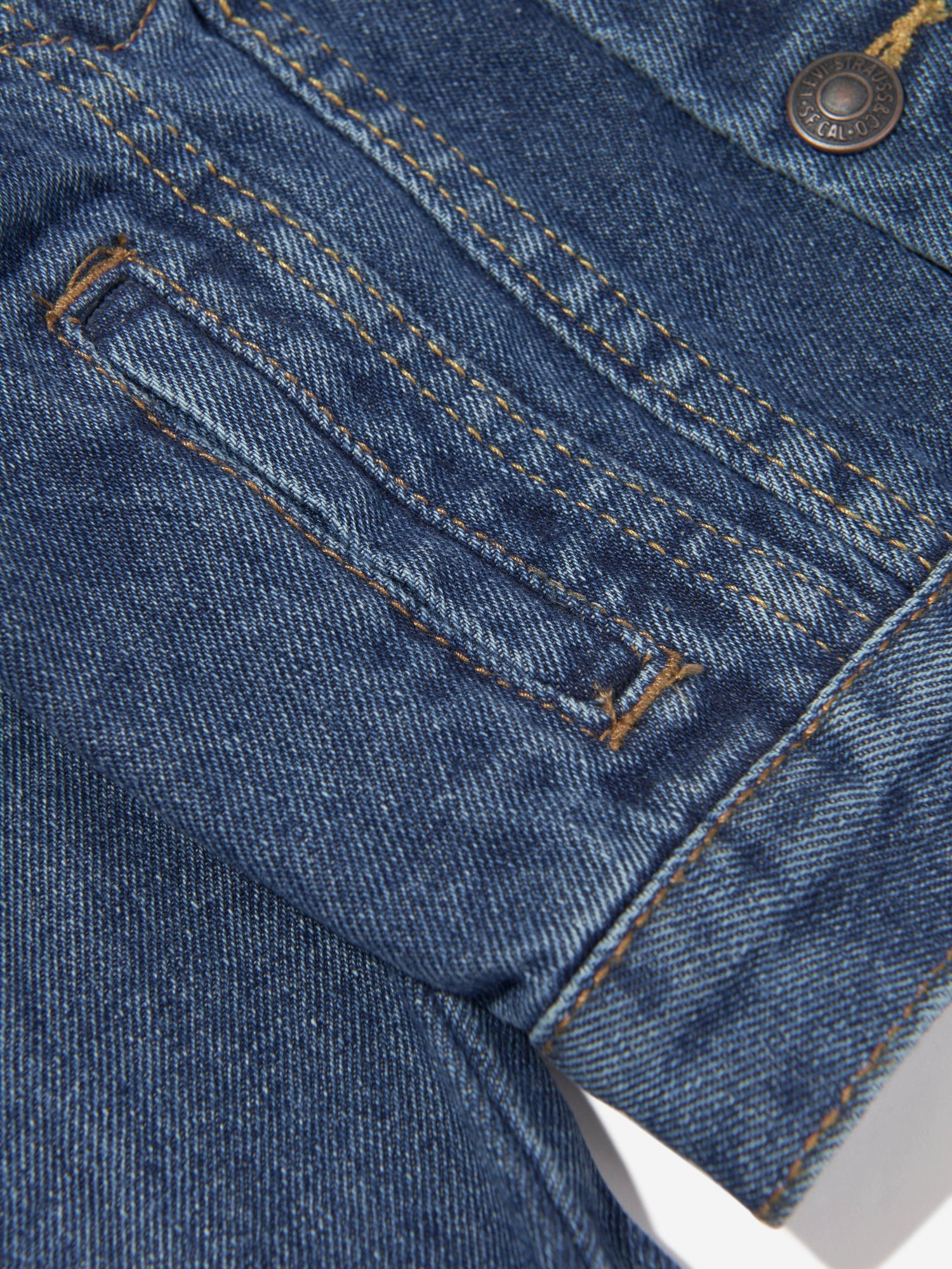 Introducing the Boys Cotton Denim Trucker Jacket in Blue, a trend-setting piece from Levi's. Revamp your boy's wardrobe with this high-end designer item offering: