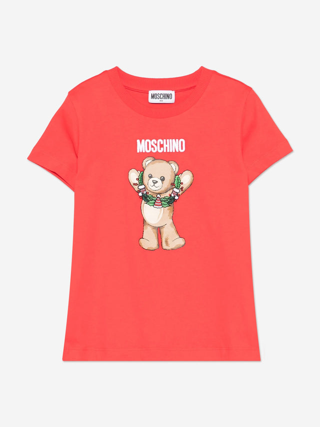 Introduce a splash of colour to your child's seasonal wardrobe with the Moschino Kids Seasonal Teddy T-Shirt in Red. Perfectly blending stylish flair with cosy comfort for AW2025, this t-shirt is a standout addition. Key features include: