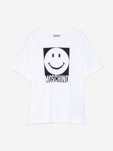 Moschino Kids Smiley Face Logo T-Shirt in White