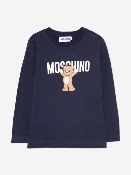 Moschino Kids Long Sleeve Teddy Logo T-Shirt in Navy