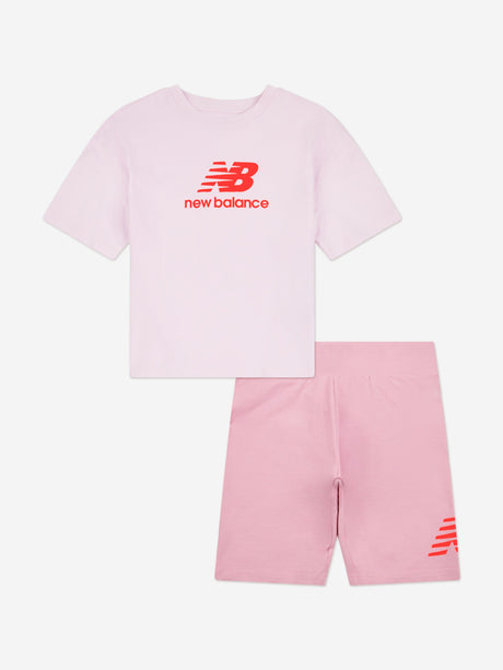 New Balance Girls Logo T-Shirt and Cycling Shorts Set in Pink