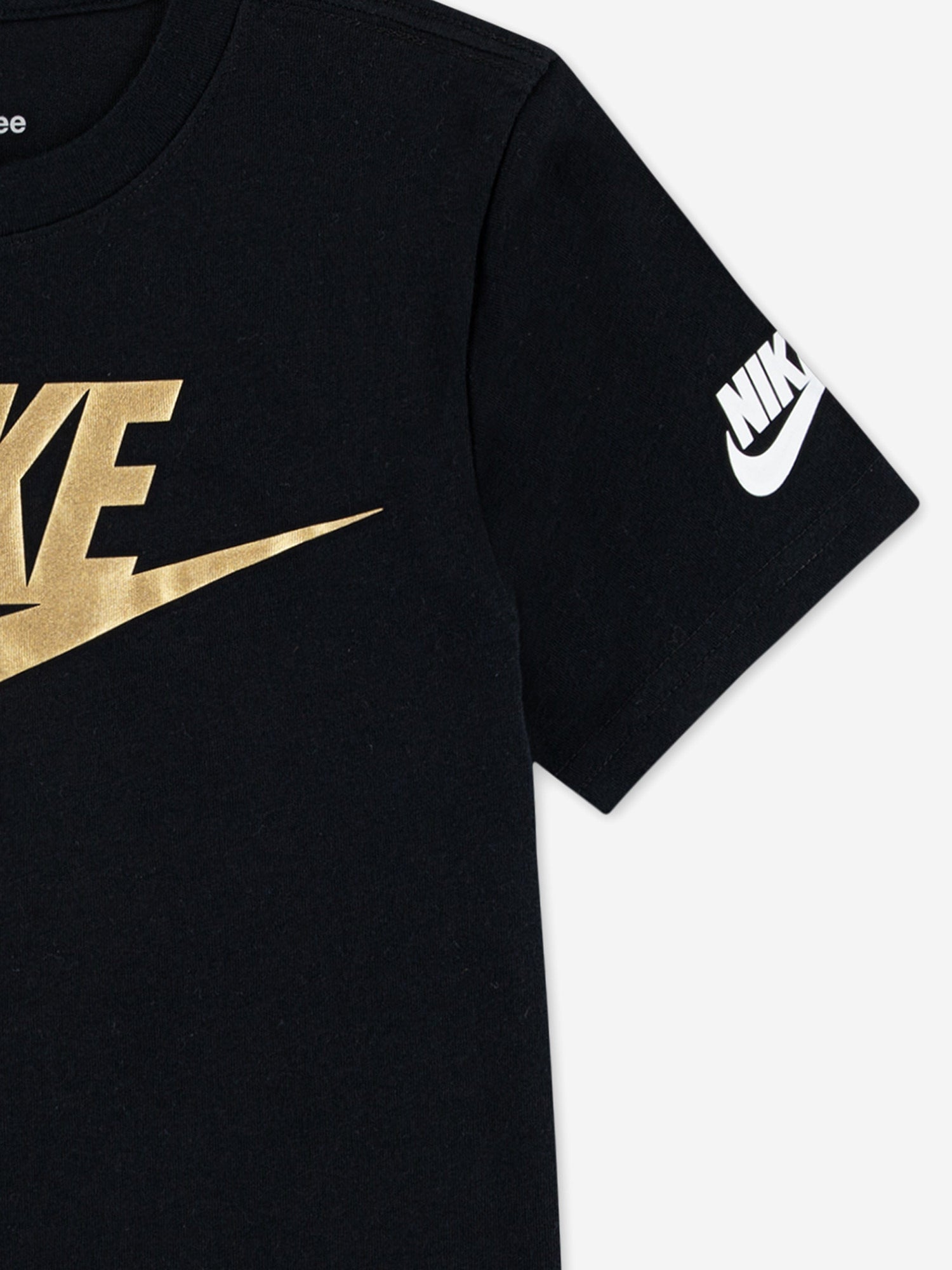 Introducing the Kids Futura Evergreen T-Shirt in black from Nike – the pinnacle of style & comfort for AW2025. Ideal for both boys & girls, this designer t-shirt is an essential addition to any youthful wardrobe. Discover its standout features: