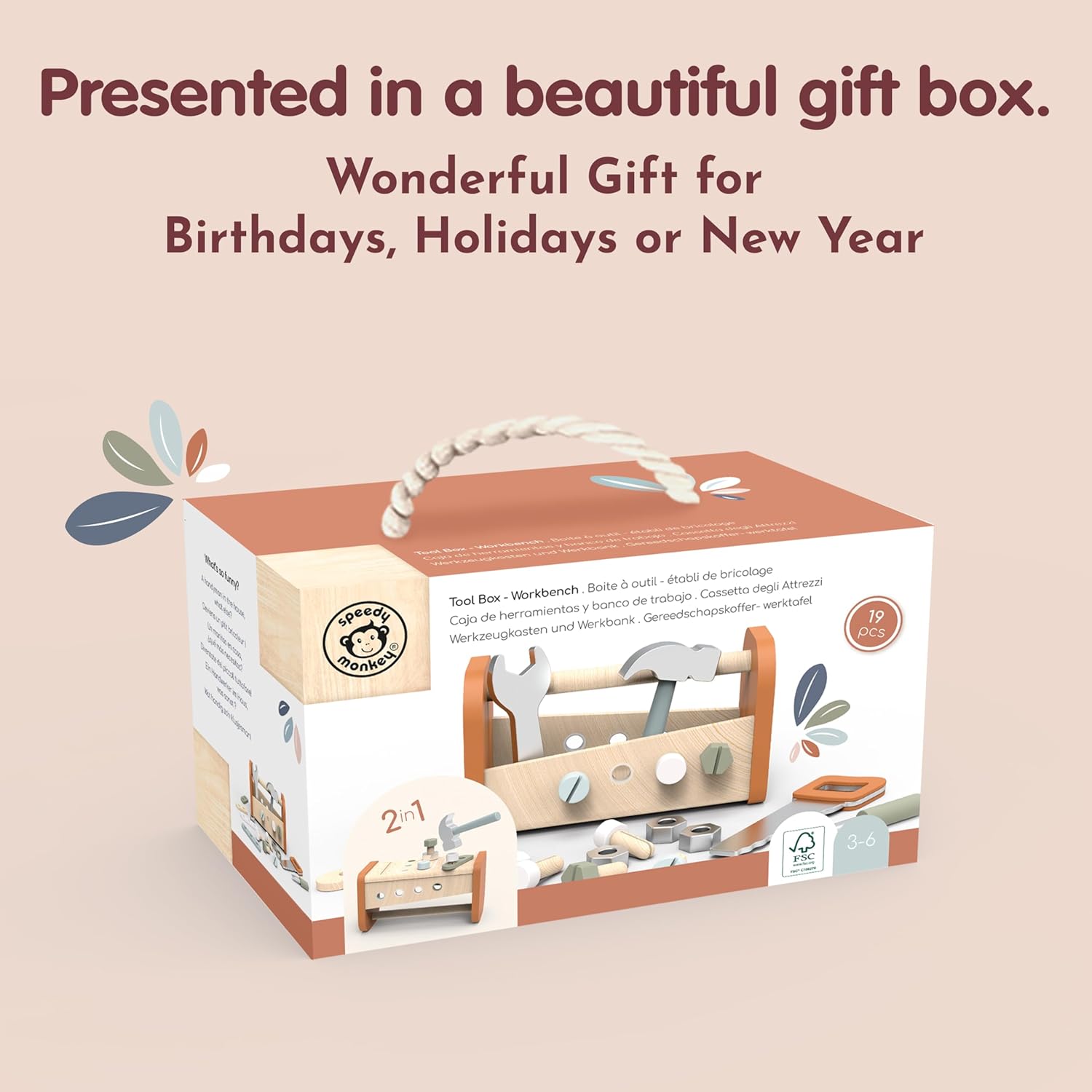 Crafted from durable, certified wood, this multifunctional toy is built to last while providing endless opportunities for role play. The 2-in-1 design allows children to carry their tools neatly inside the toolbox, then transform it into a sturdy workbench for exciting building projects. With a hammer, saw, screwdriver, wrench, screws, and nails included, little builders can enjoy hours of interactive, educational play. The compact size makes it ideal for small spaces, travel, or as a thoughtful gift for curious children aged 3 and above.