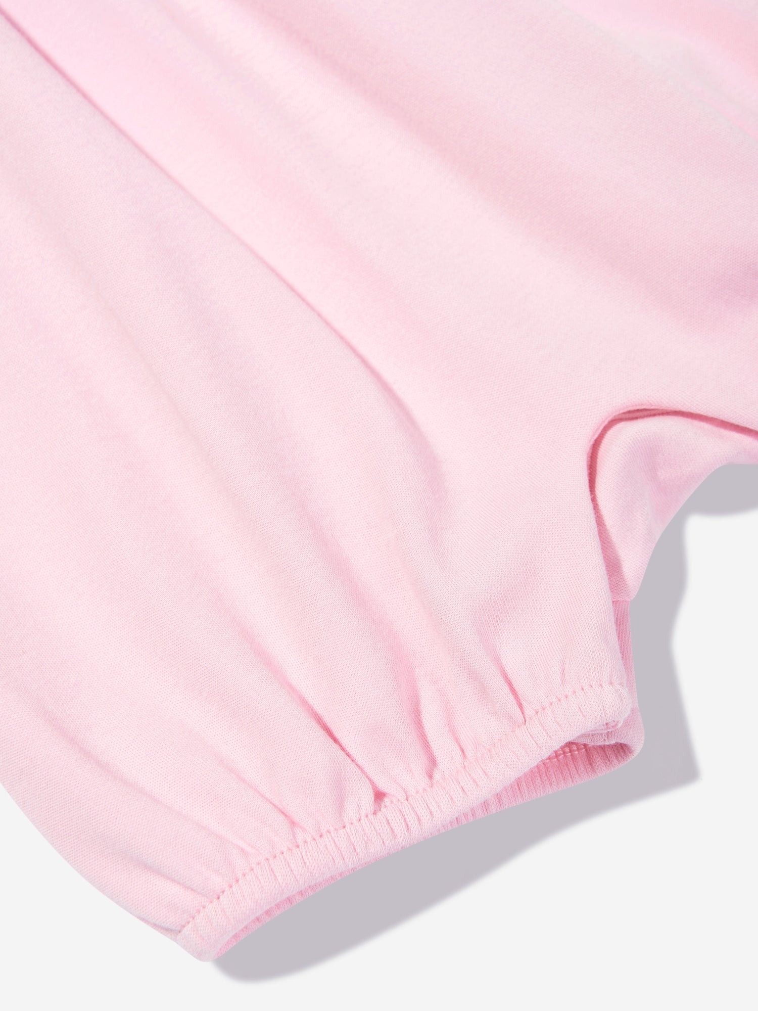 Ralph Lauren's modern American lifestyle is embodied in their distinctive craftsmanship. This baby girls romper is made from pink cotton jersey, heightened by signature Polo Pony embroidery.
