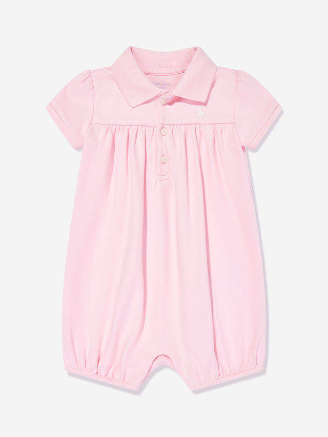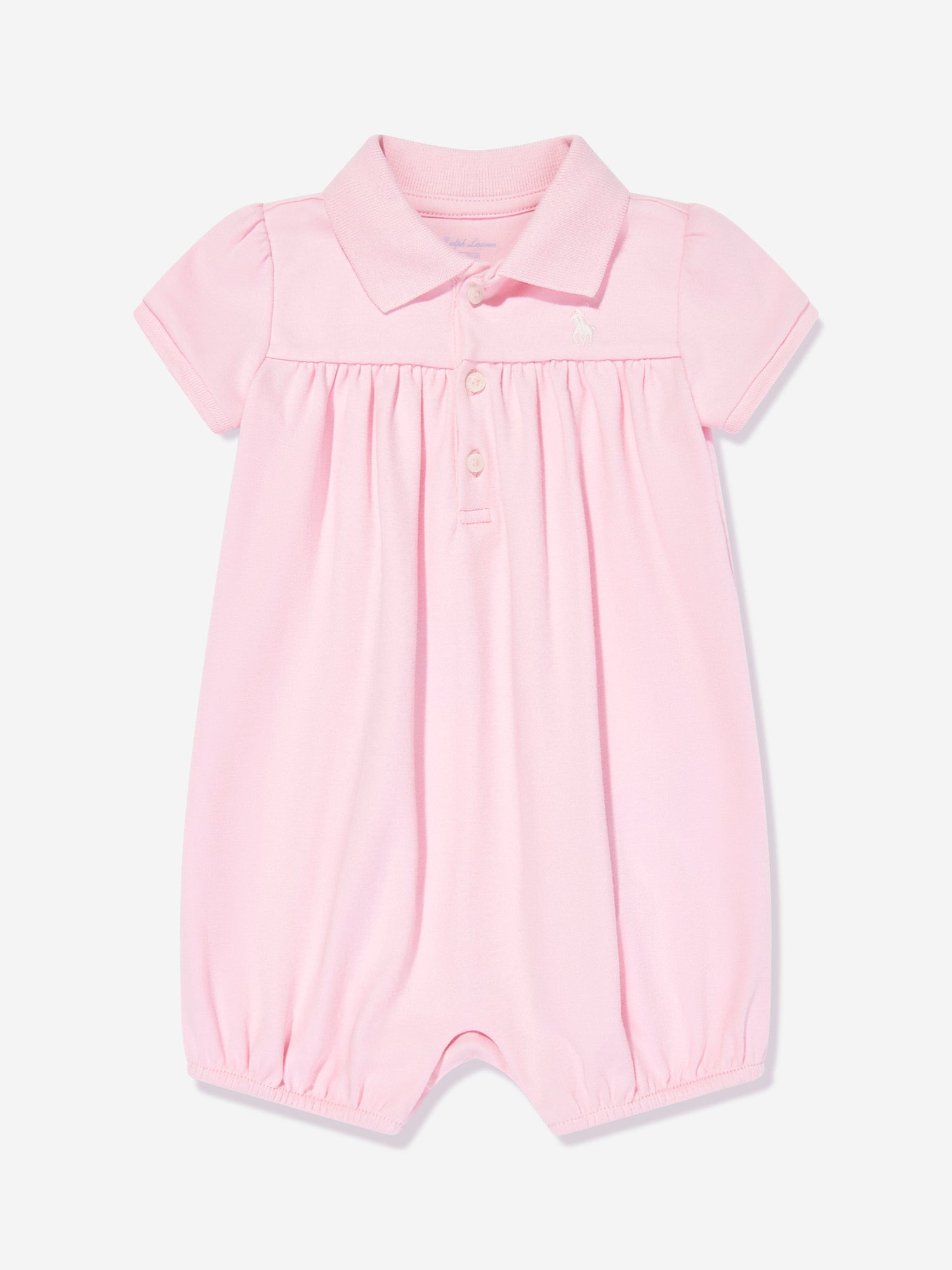 Ralph Lauren Baby Girls Polo Bubble Romper in Pink