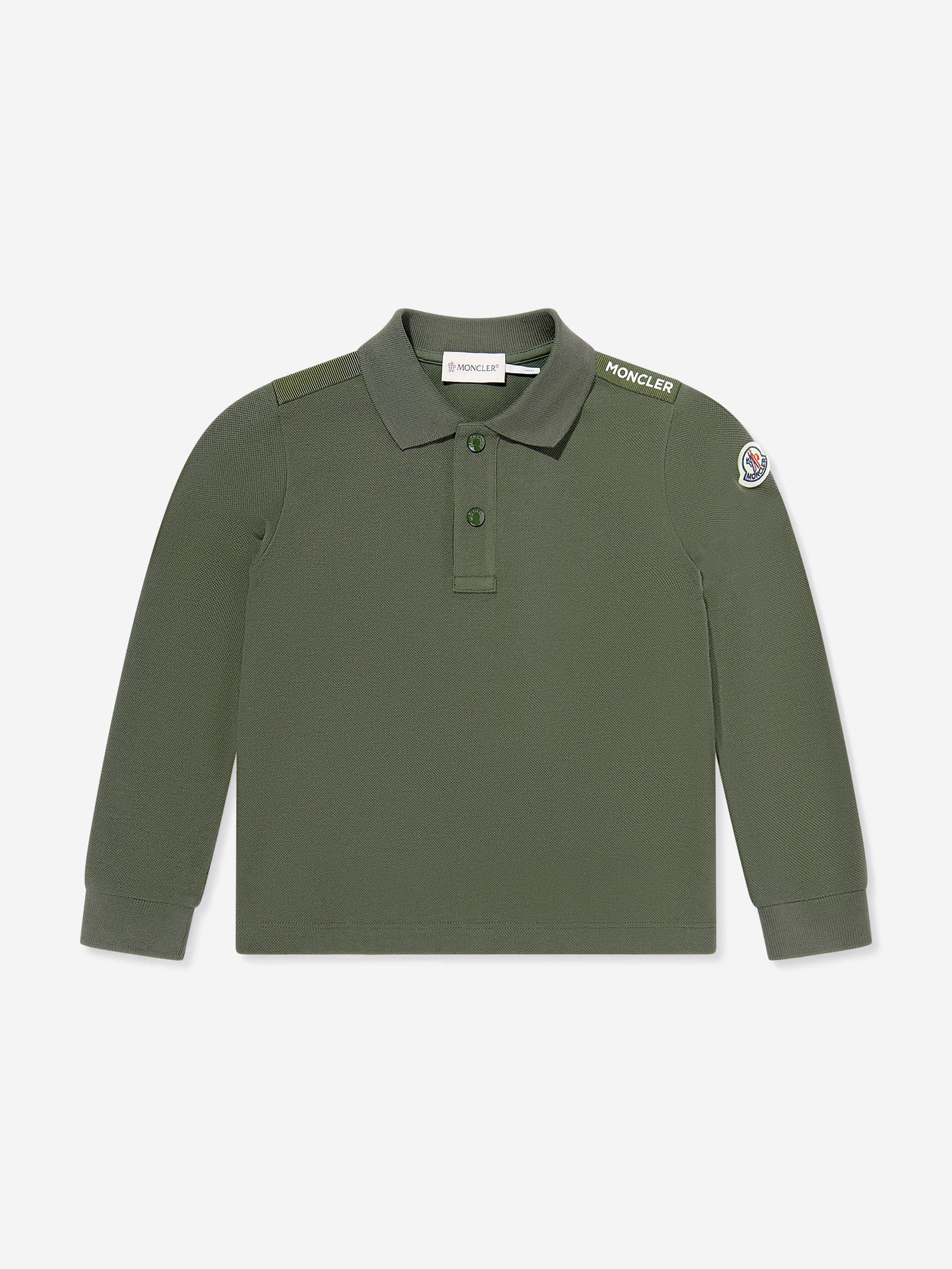 Moncler Enfant Boys Long Sleeve Polo Shirt in Green