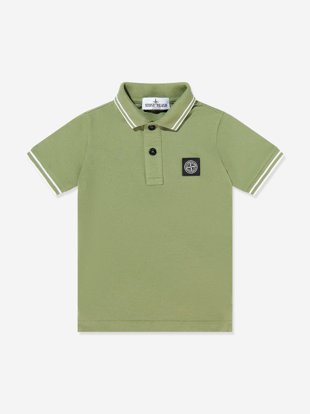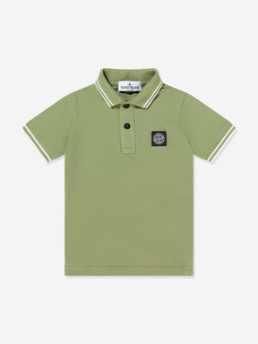Stone Island Boys Compass Patch Polo Shirt in Green