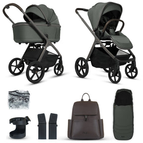 - Stylish Footmuff & Changing Bag – Coordinated micro-fleece footmuff and vegan leather changing bag enhance convenience and style.