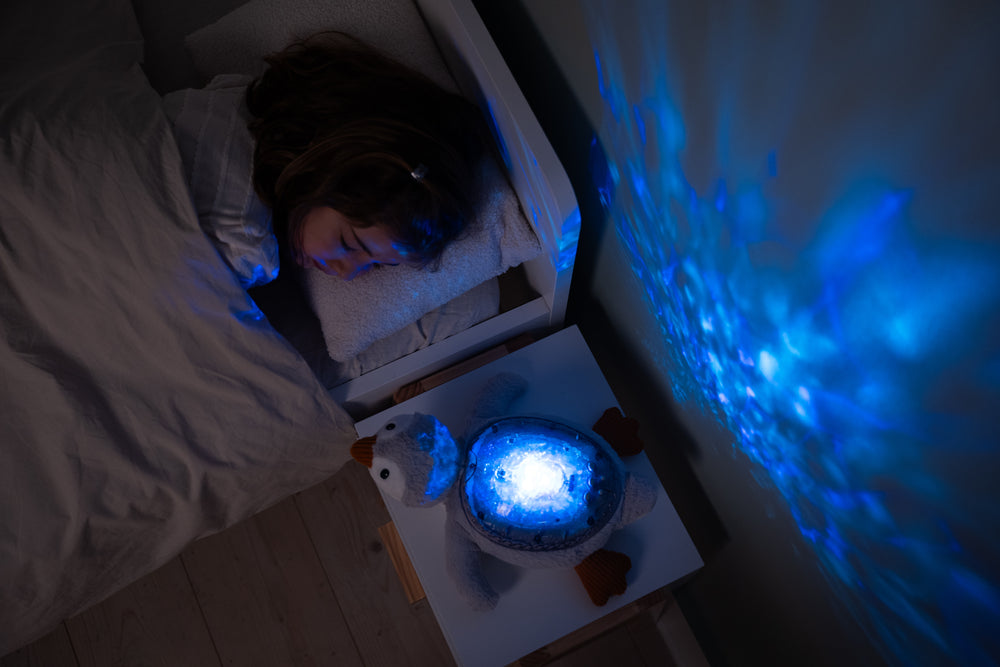 The Tranquil Penguin™ by Cloud b transforms bedtime into a serene experience. By projecting a moving polar underwater light effect onto the ceiling and walls, it creates a tranquil ambience that relaxes and reassures. The penguin’s soft body, made from GRS-certified recycled polyester, doubles as a comforting plush toy during the day and a gentle nightlight after dark.