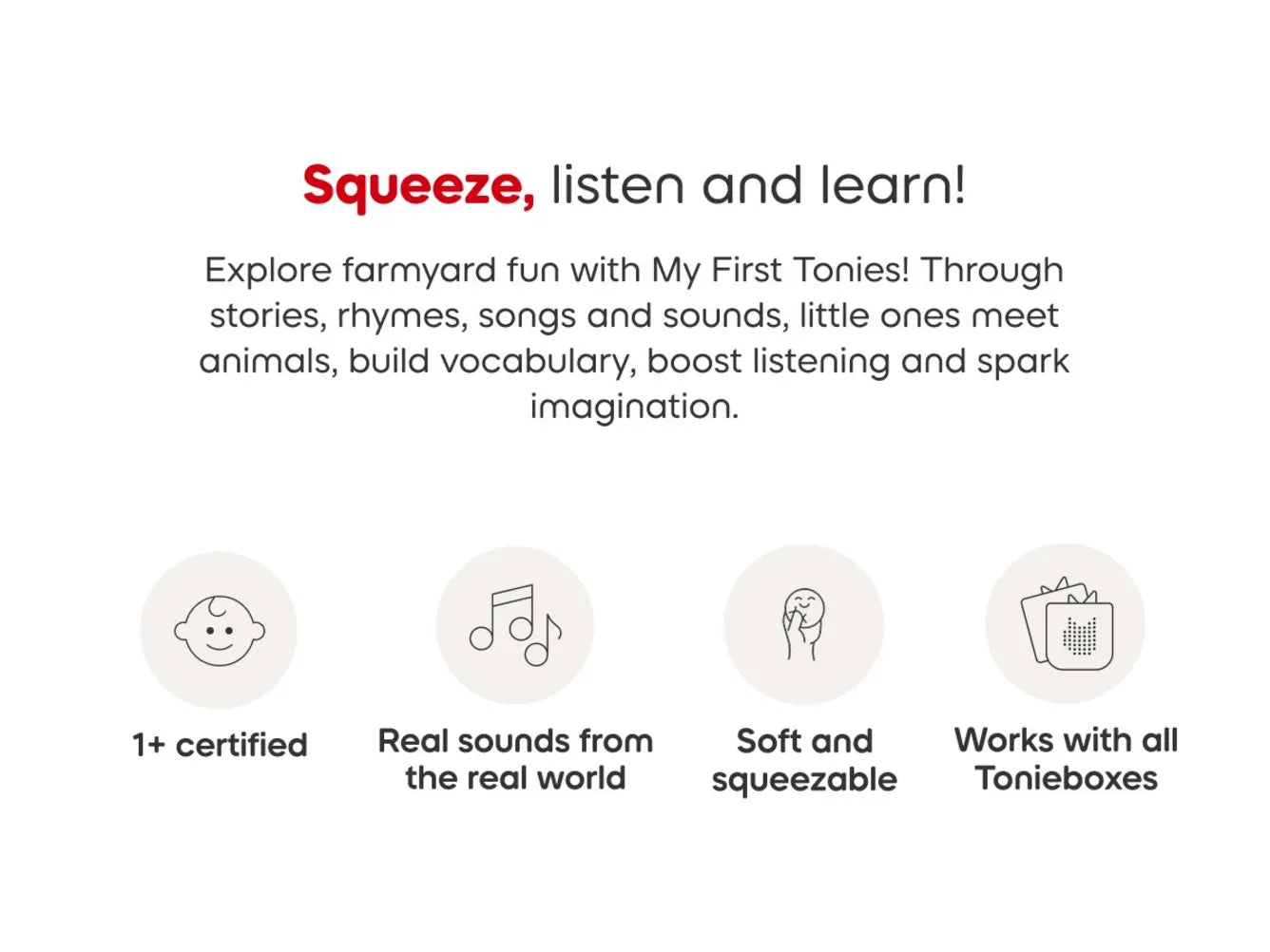 Let your little one discover the wonderful world of the farm with My First Tonies: Farm Animals. From mooing cows to playful pigs and galloping horses, children will explore how animals sound, play, and live in a lively, musical way.