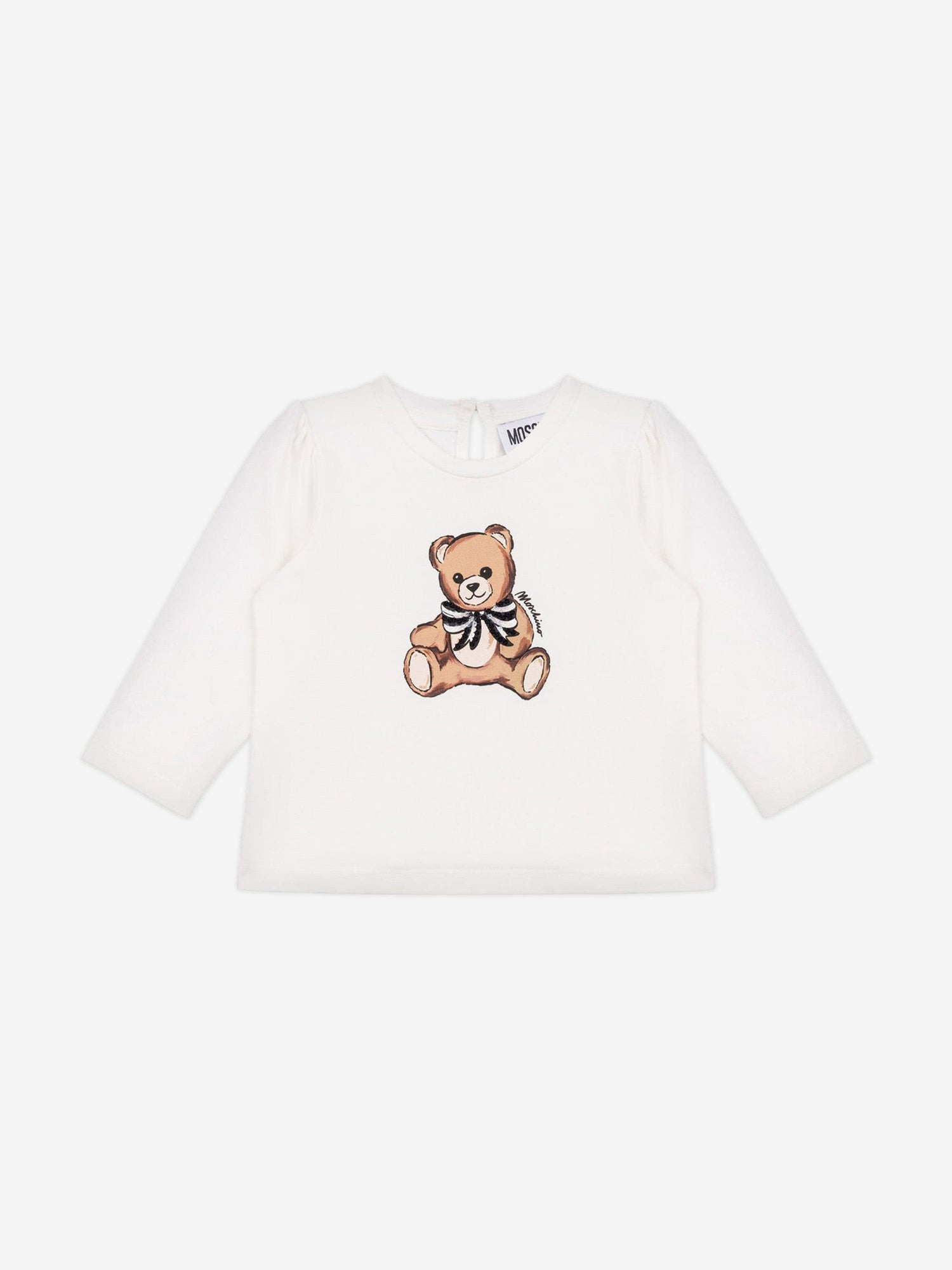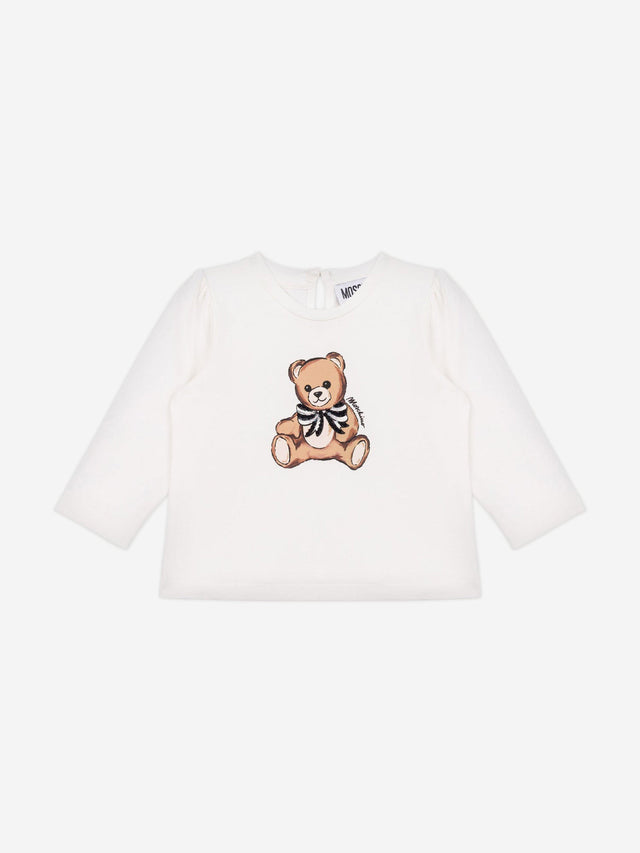 Moschino Baby Girls Long Sleeve Teddy T-Shirt in Ivory