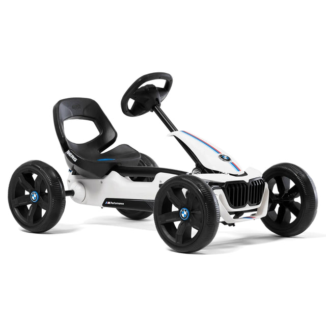 The BERG Reppy BMW Go-Kart brings the premium design of BMW to younger riders. With a sporty steering wheel, puncture-proof EVA tyres, adjustable bucket seat, and integrated Soundbox, this kids’ go-kart delivers a realistic driving experience for children aged 2.5 to 6 years.