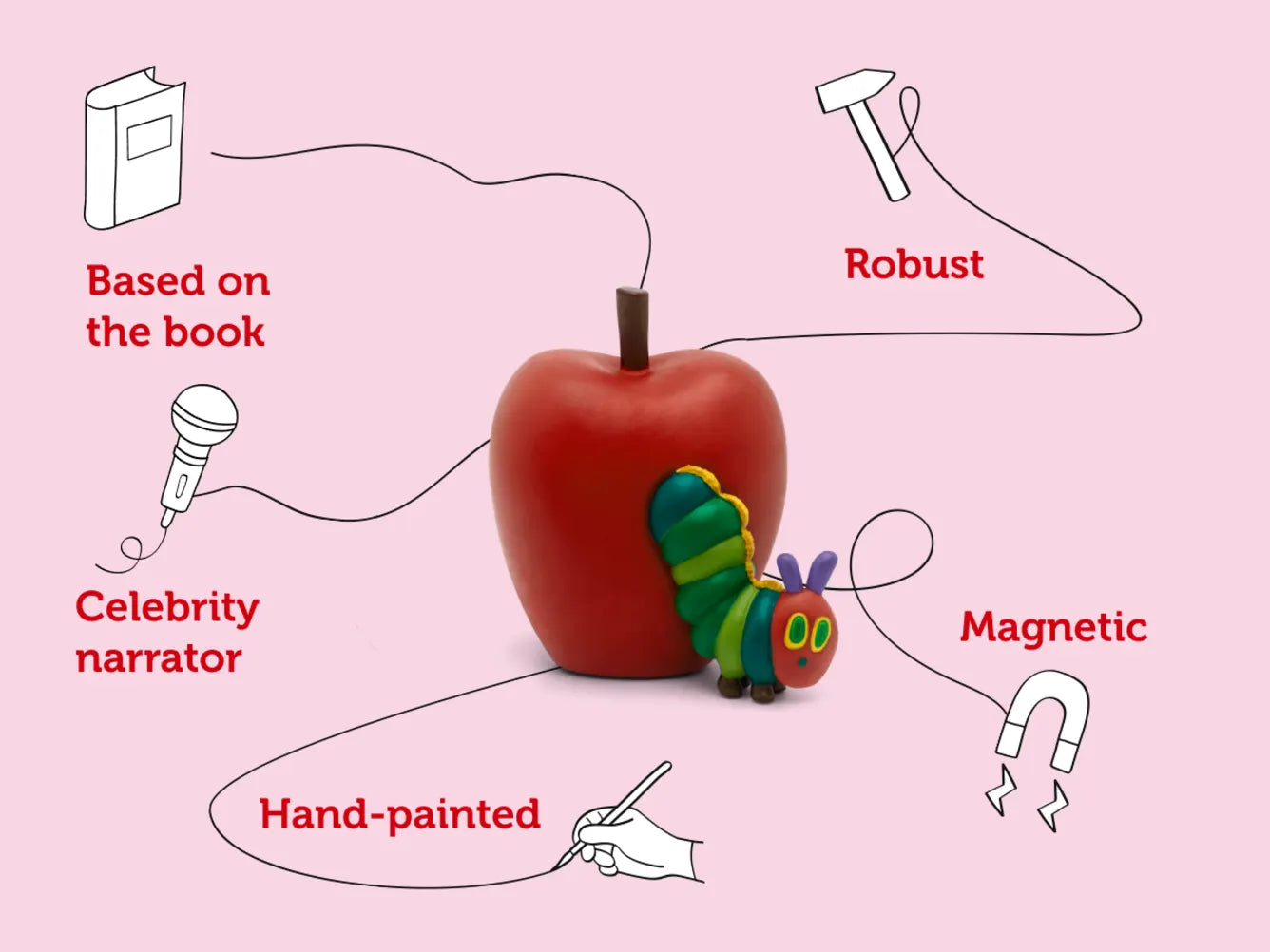 - Easy magnetic connection — simply place on the Toniebox to start playing.
