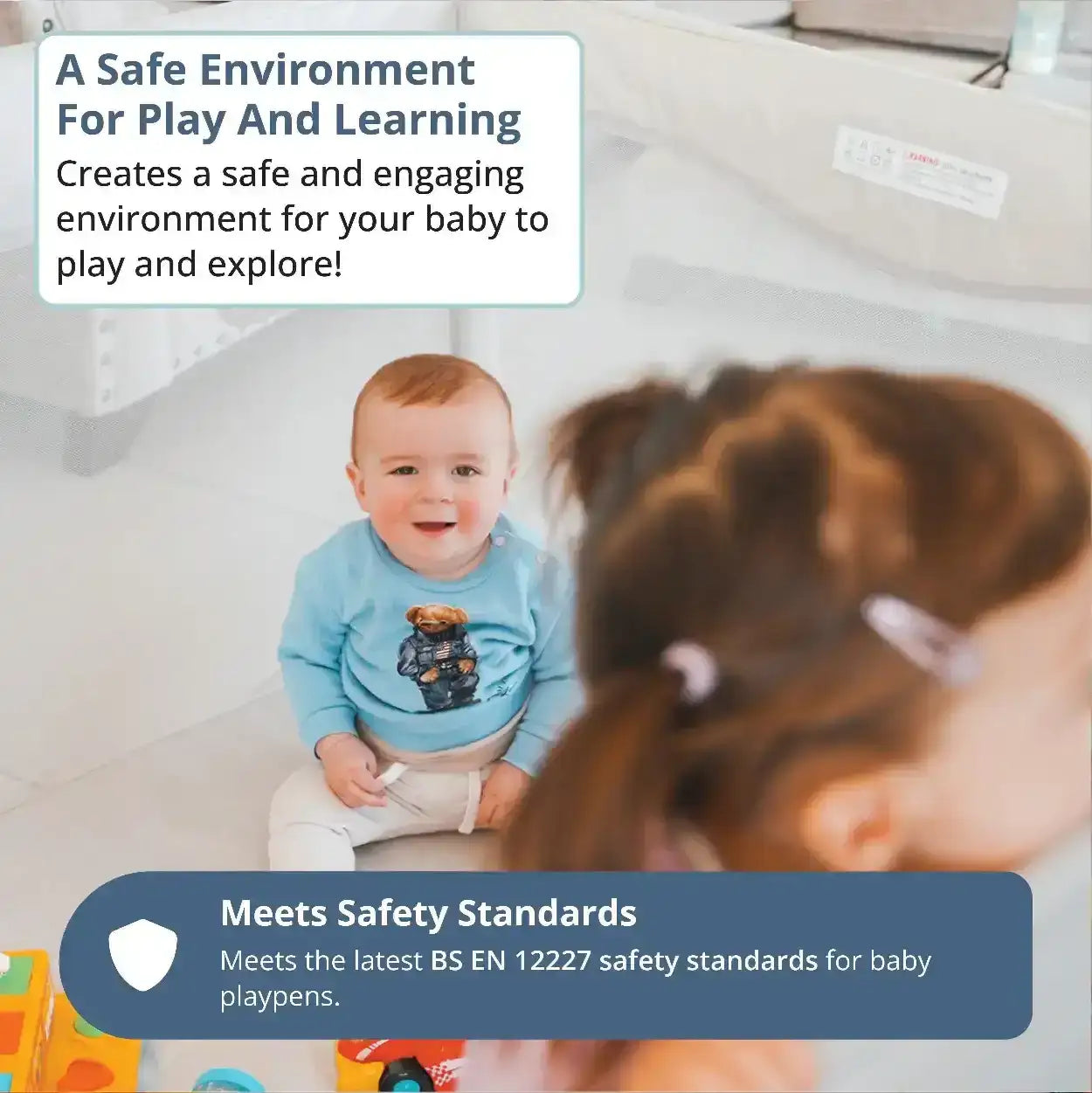- Safe and Secure Play Area: Creates a safe space where your child can play comfortably in the baby playpen. Just add some some play balls or toys and your good to go!