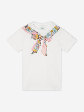 Fendi Girls Trompe l'oeil Bow Print T-Shirt in White