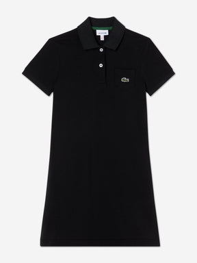 Introducing the exquisite Girls Logo Pocket Polo Dress by Lacoste Kids, a timeless addition to any young lady's wardrobe. Expertly crafted in France, this chic black polo dress seamlessly blends elegance with playful charm, suitable for any season. Discover its exceptional features: