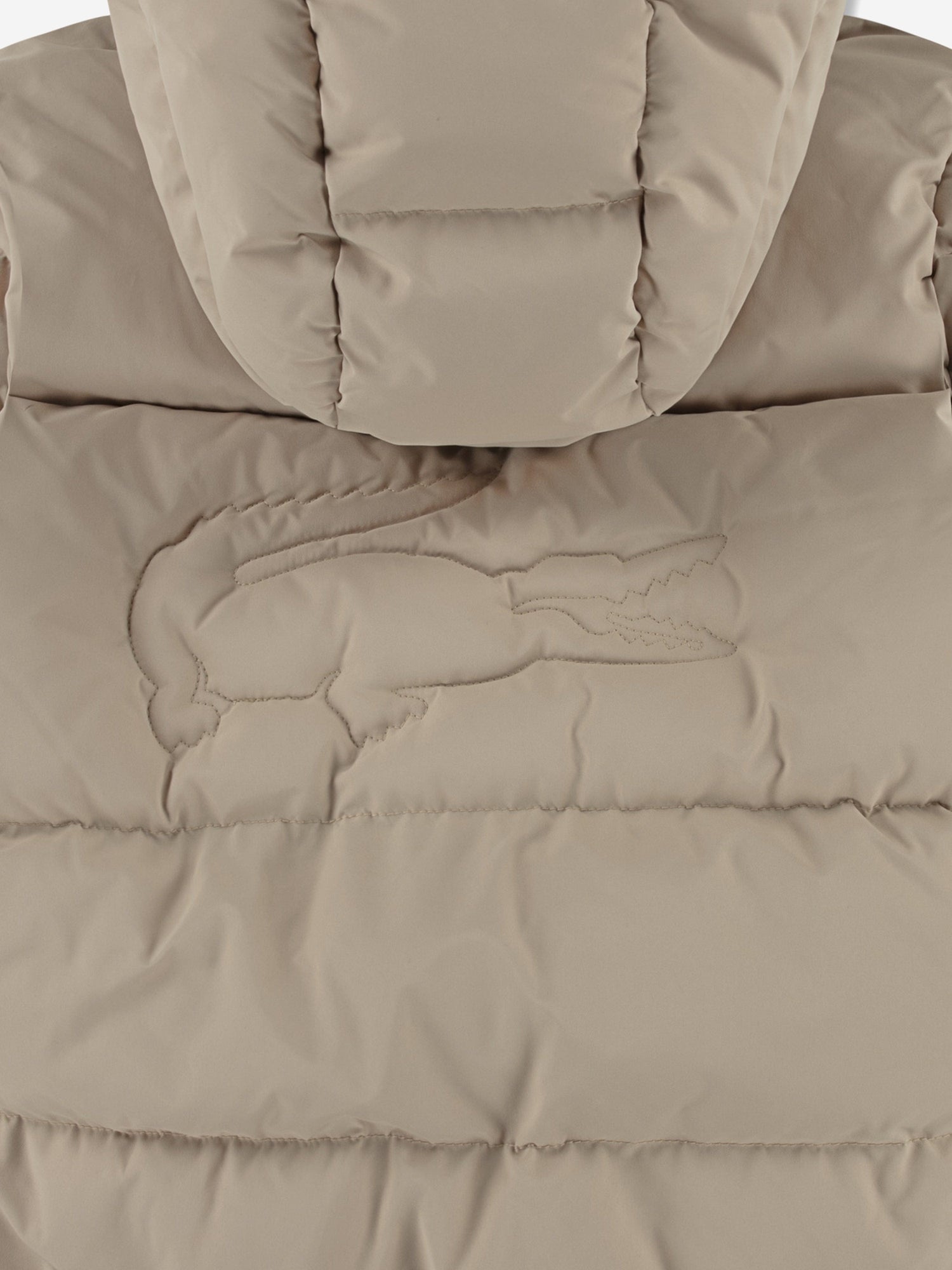 Embrace modern warmth and signature sophistication with this Lacoste puffer jacket in refined beige.