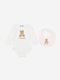 Moncler Enfant Baby Girls Teddy Bear Bodysuit and Bib Gift Set in Pink