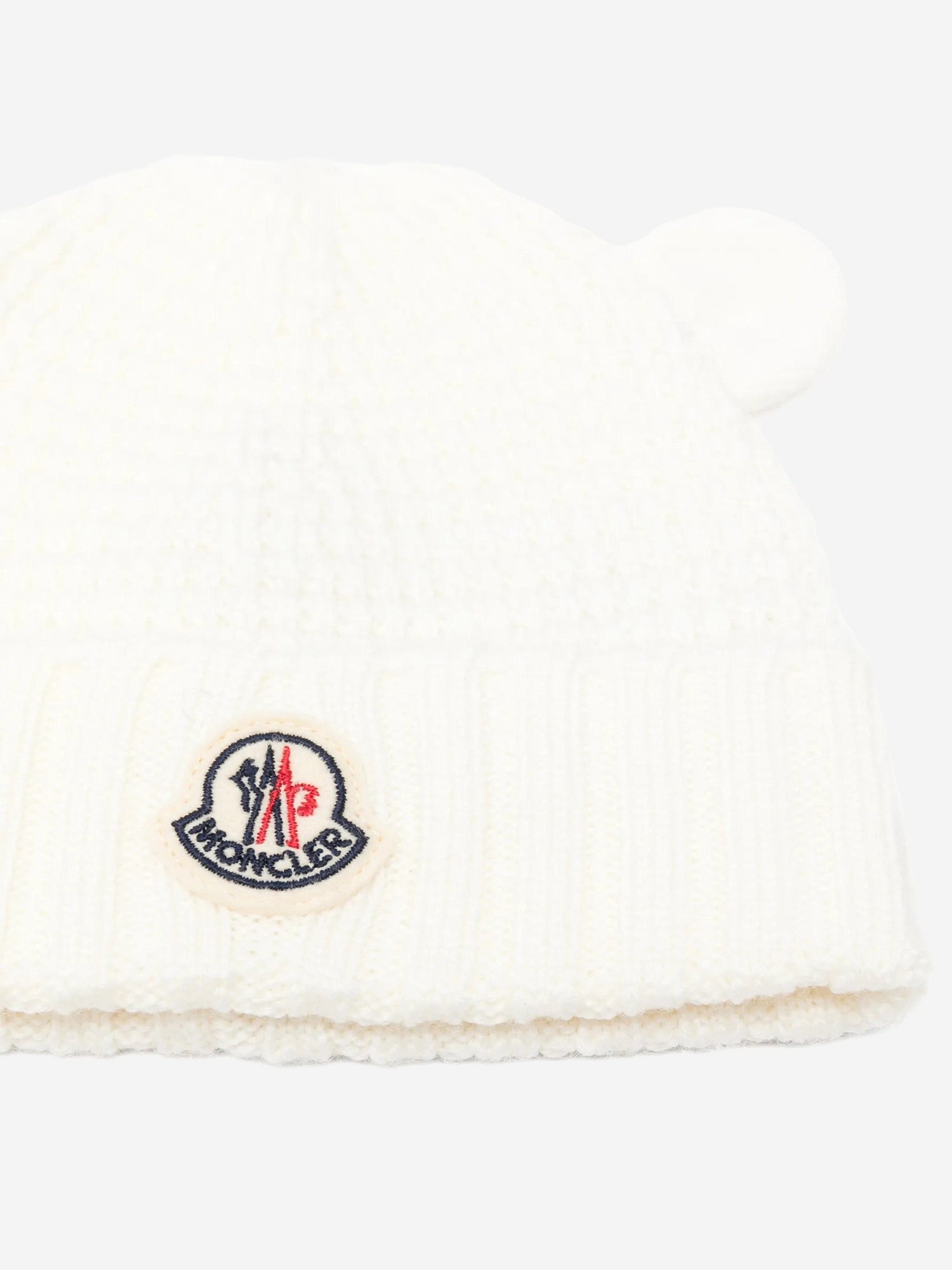 Moncler Enfant Baby Wool Beanie Hat with Ears in White
