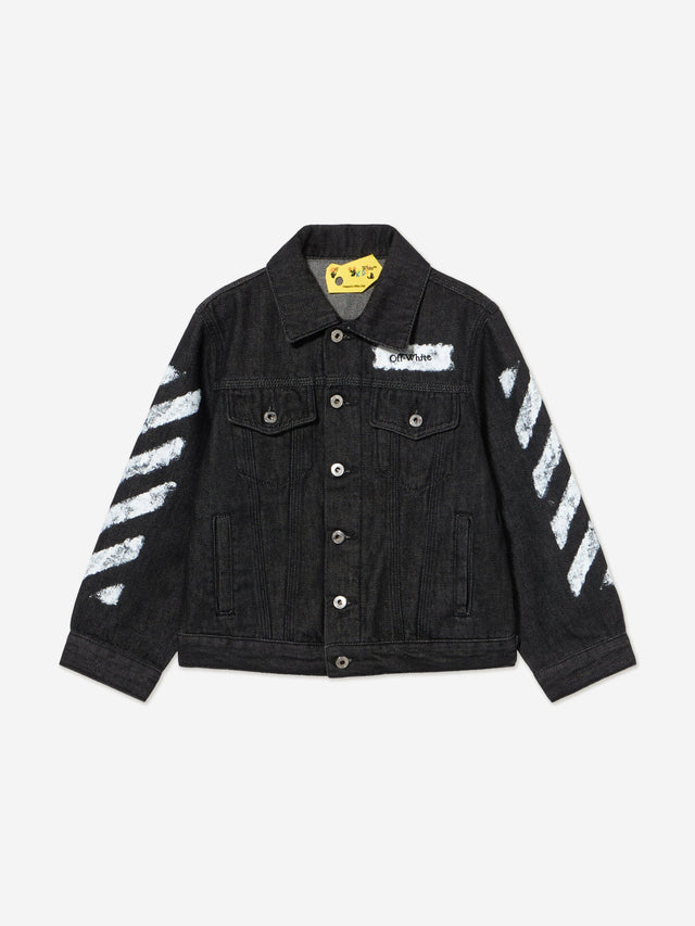 Off-White Boys Diagonal Sponge Denim Jacket in Black