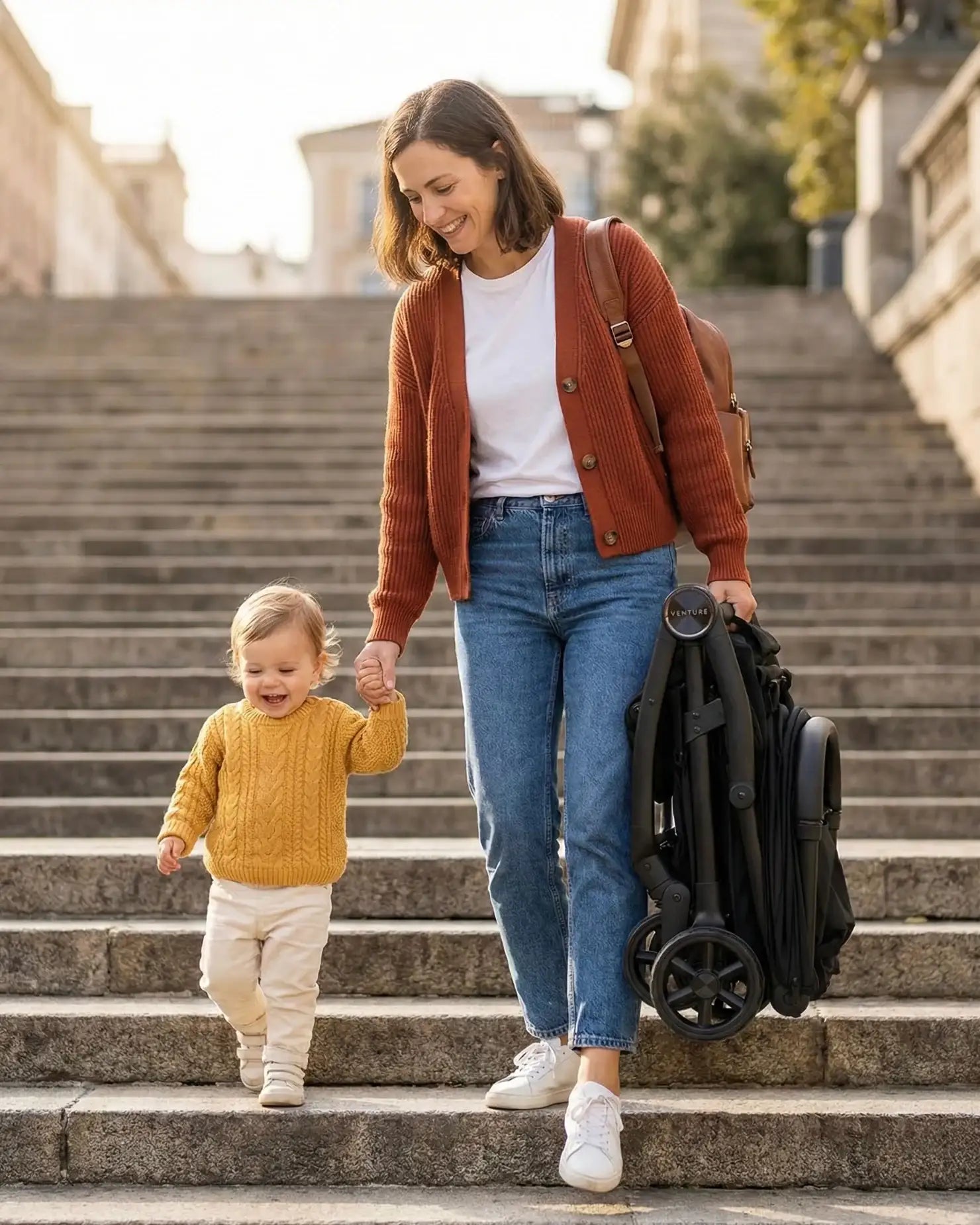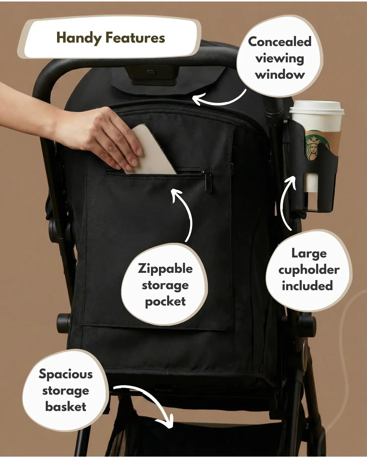 - Travel-Ready Pushchair - Cup holder & rain cover included, car seat adapters available.